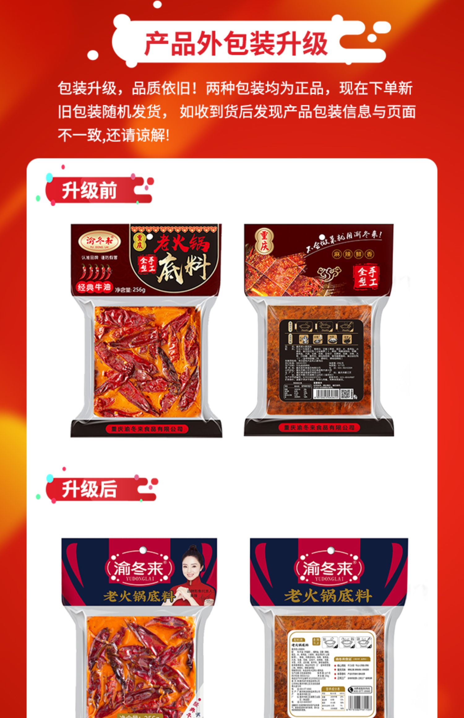 • 商品名称:渝冬来正宗重庆牛油老火锅底料四川超麻辣烫家用火锅商用香锅调料