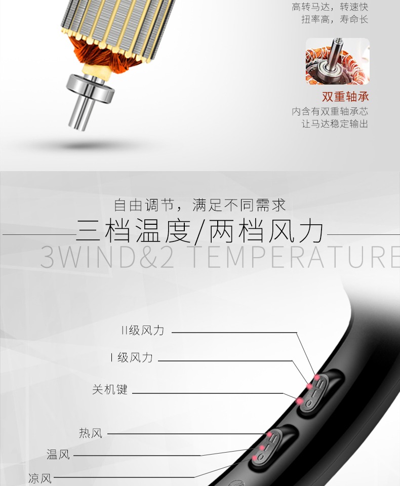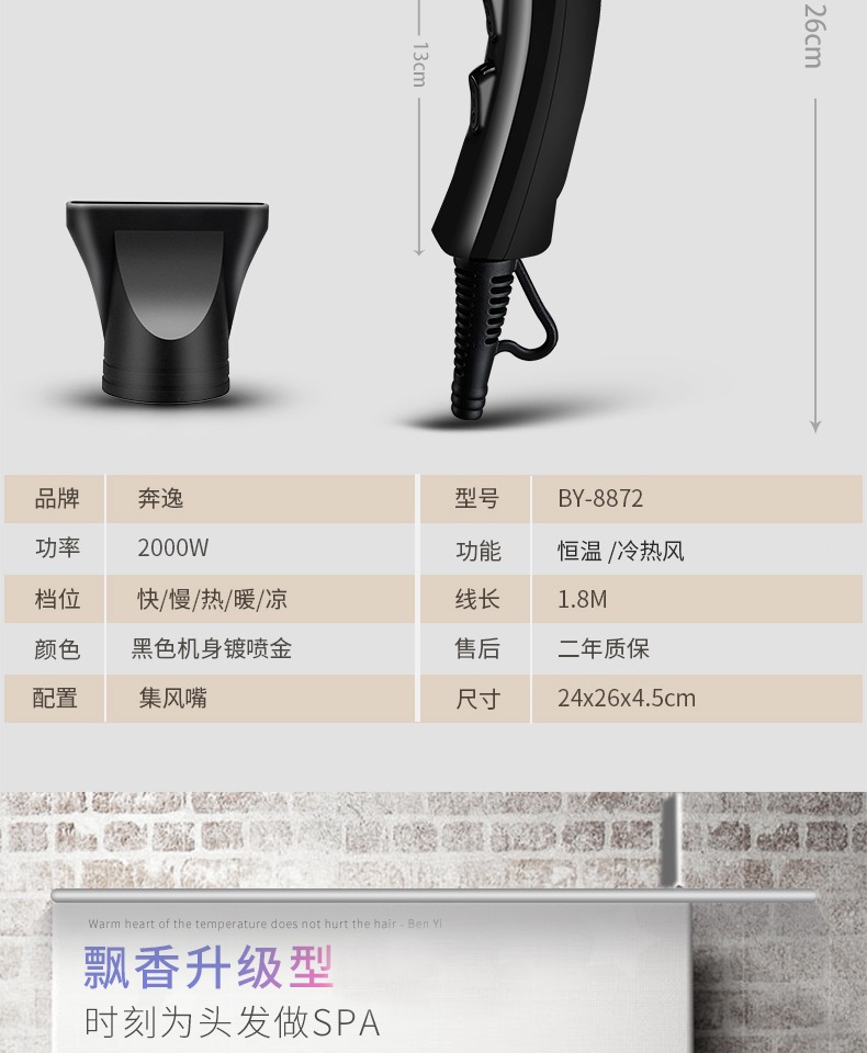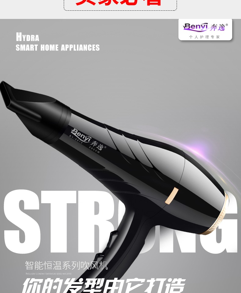 • 商品名称:奔逸电吹风机大功率家用发廊理发店吹风筒冷热风2000W恒温不伤发