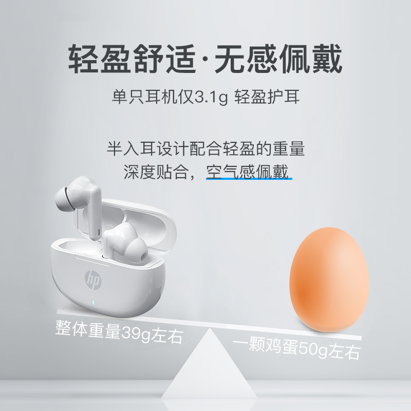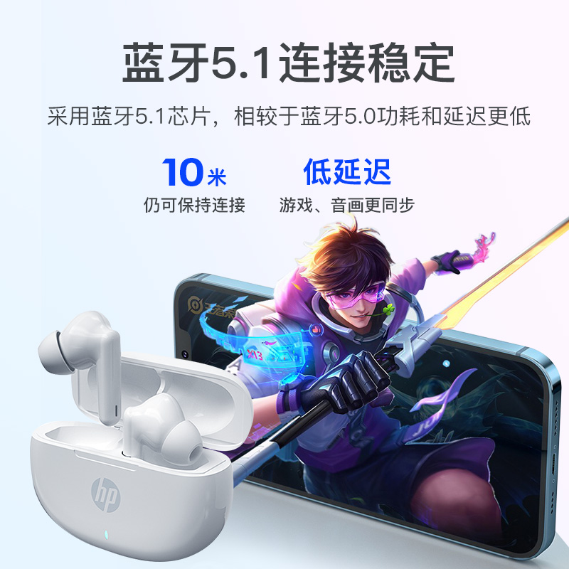 • 商品名称:HP/惠普无线蓝牙耳机真入耳式TWS耳麦女士款长续航双耳低延迟游戏运动男适用于vivo小米oppo华为苹果安卓通用