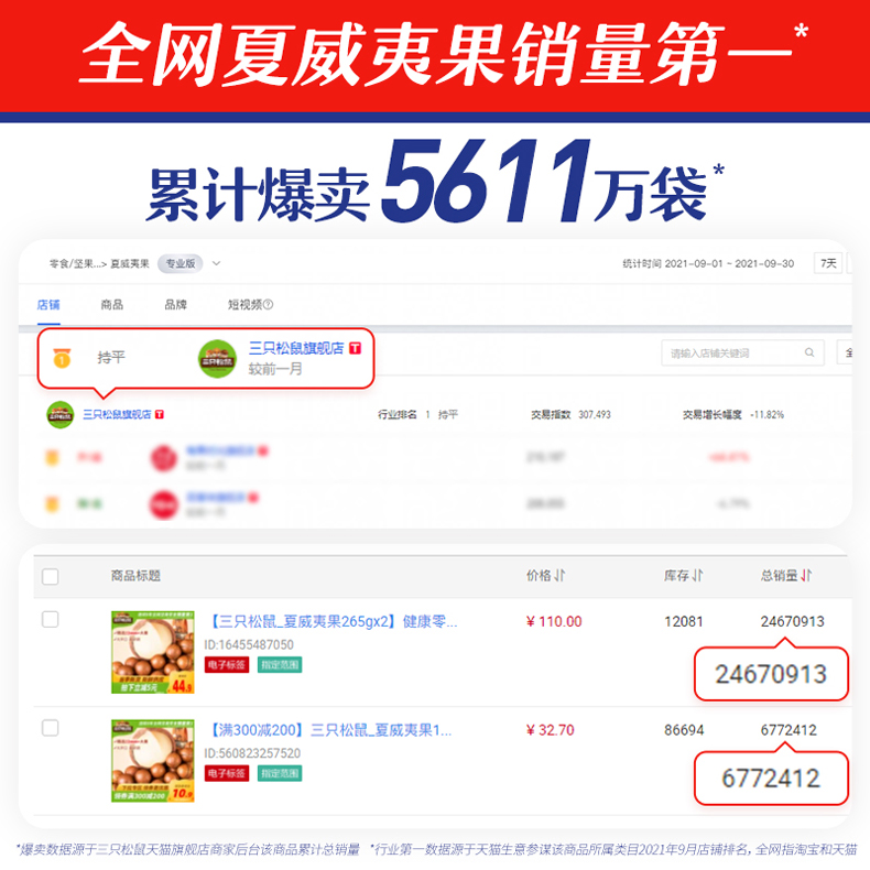 • 商品名称:新货【三只松鼠_夏威夷果265gx2】健康零食坚果干果休闲食品特产