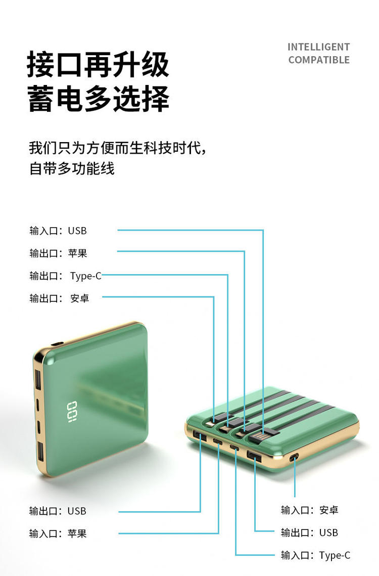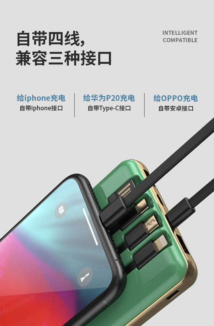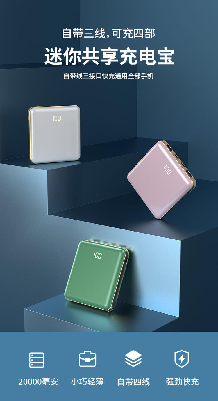 • 商品名称:充电宝20000毫安自带线超薄快充大容量华为苹果小米通用移动电源