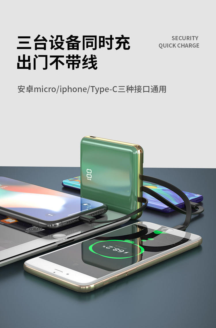 充电宝20000毫安自带线超薄快充大容量华为苹果小米通用移动电源