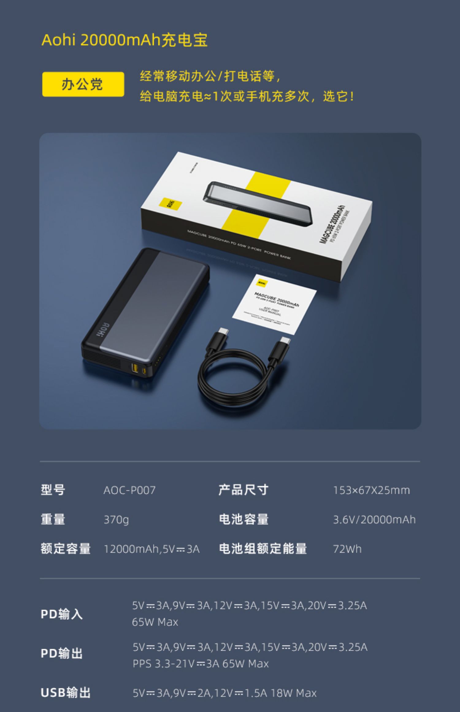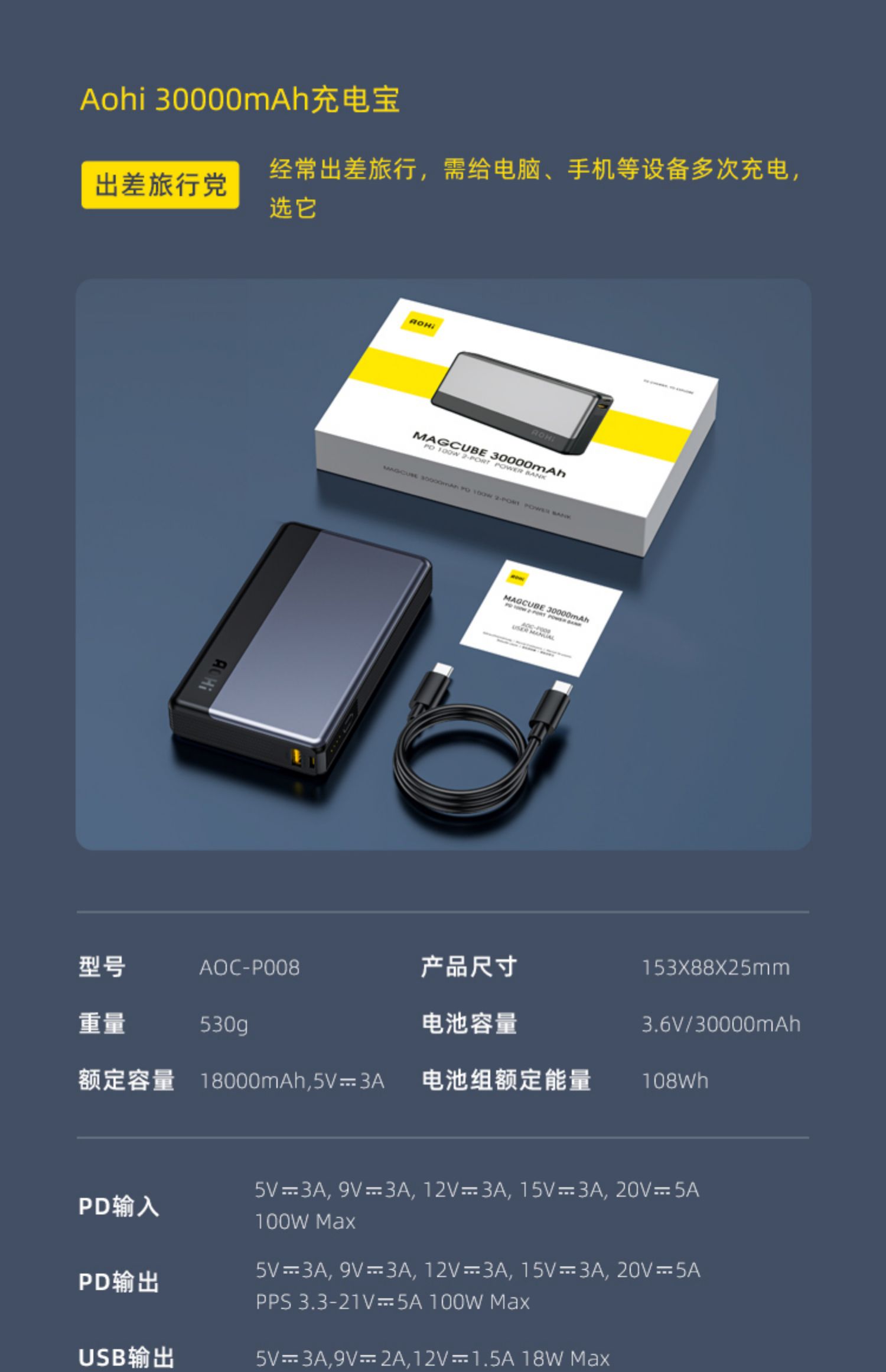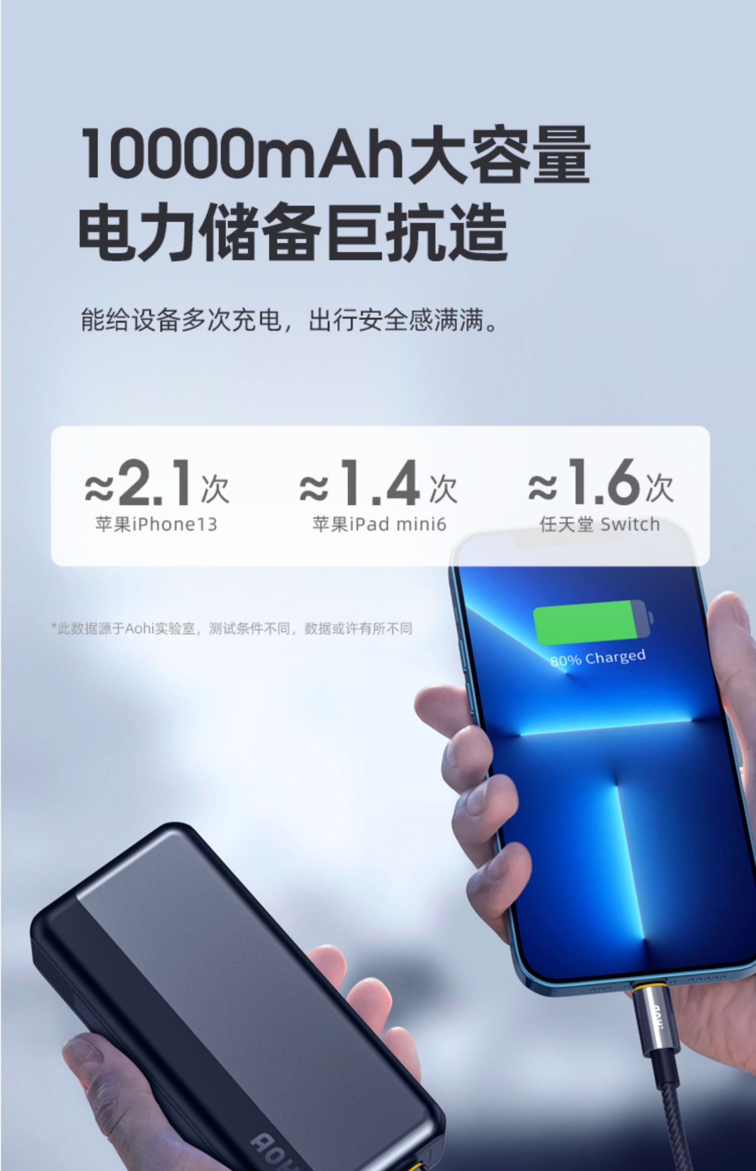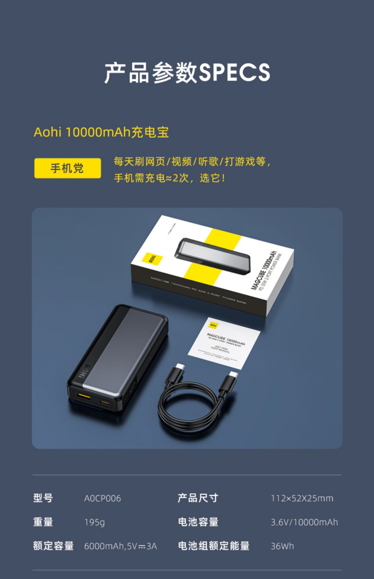 • 商品名称:Aohi奥海10000毫安30W充电宝pd快充便携小巧超薄迷你mini轻薄小型移动电源黑科技飞机可携带适用苹果13专用万