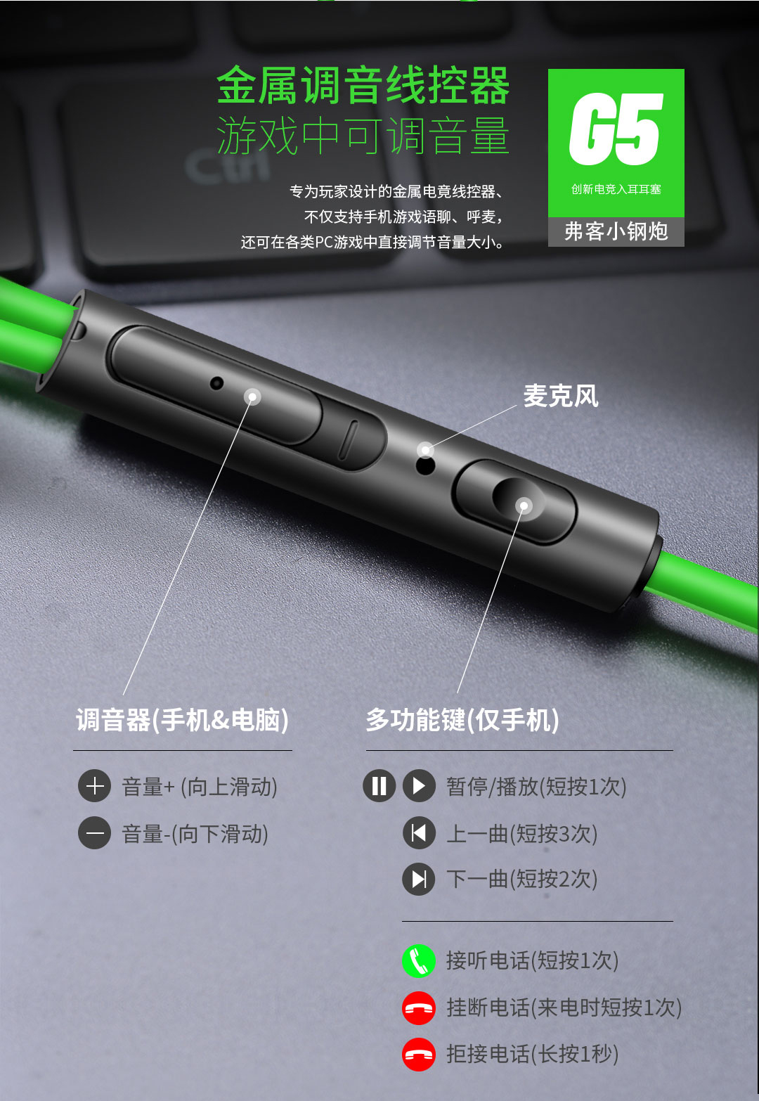 • 商品名称:黑鲨3通用游戏耳机入耳式电竞吃鸡专用有线带麦台式电脑手机笔记本用耳塞双头2米加长线cf双插头双线带麦克风