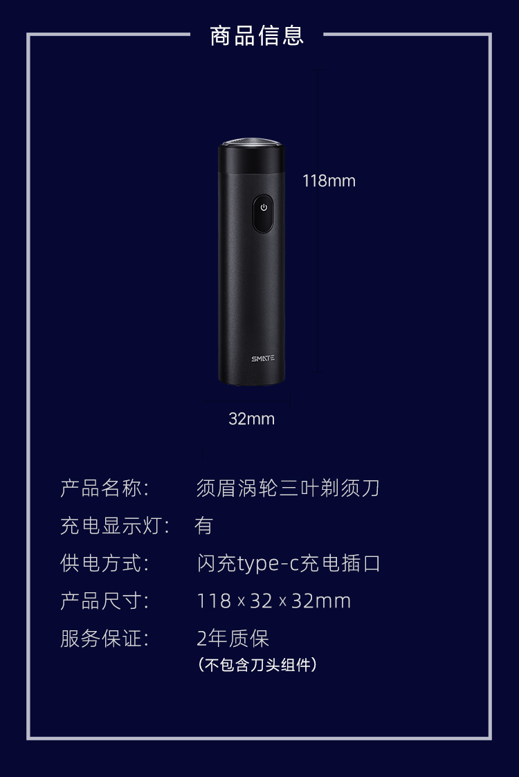 • 商品名称:须眉剃须刀T3旅行便携网红车载式电动男士涡轮刀男士刮胡刀