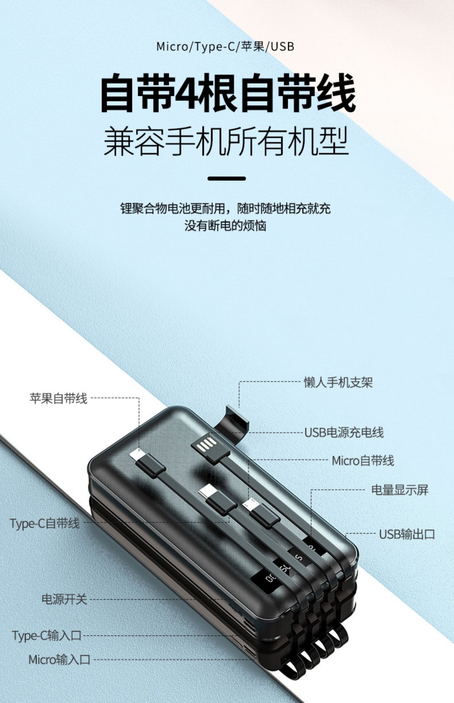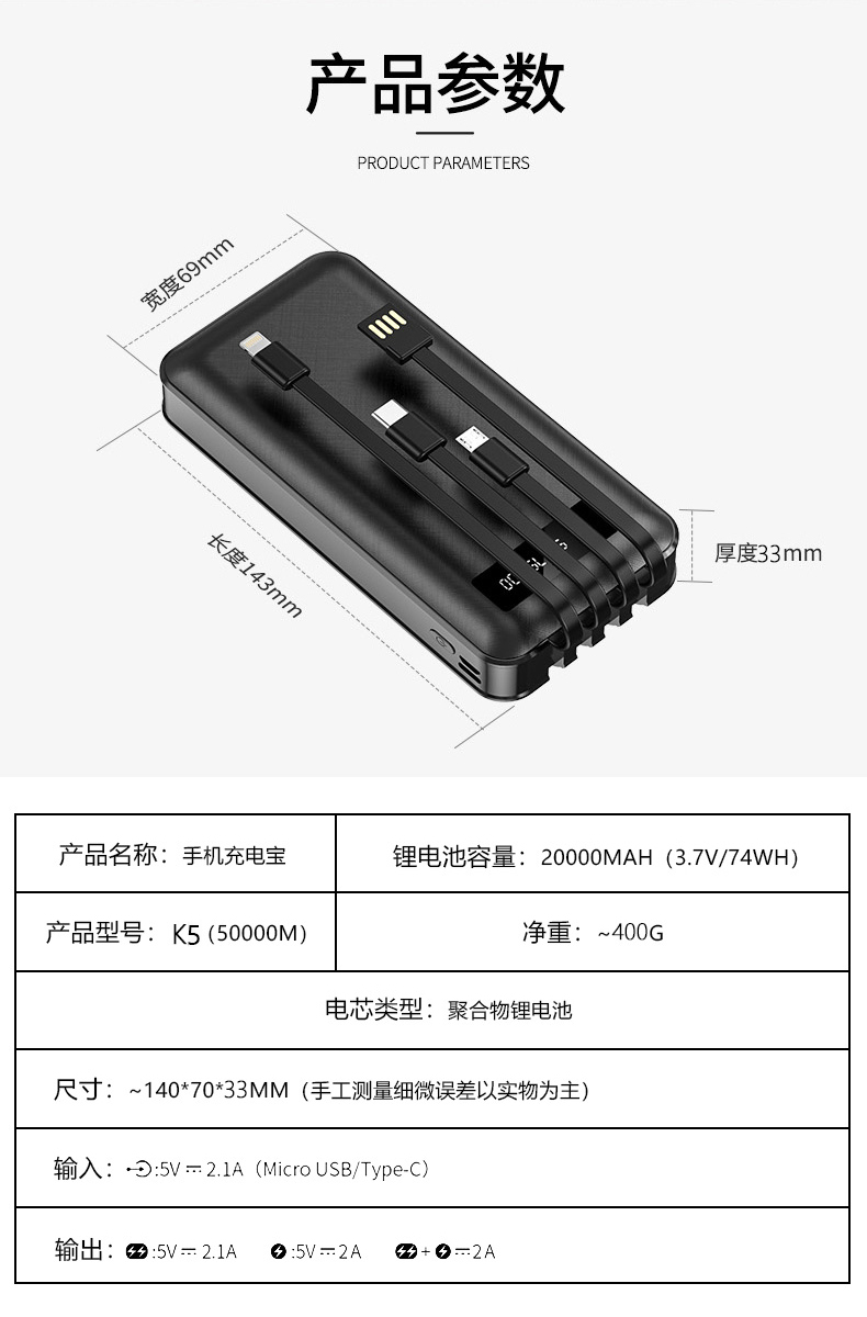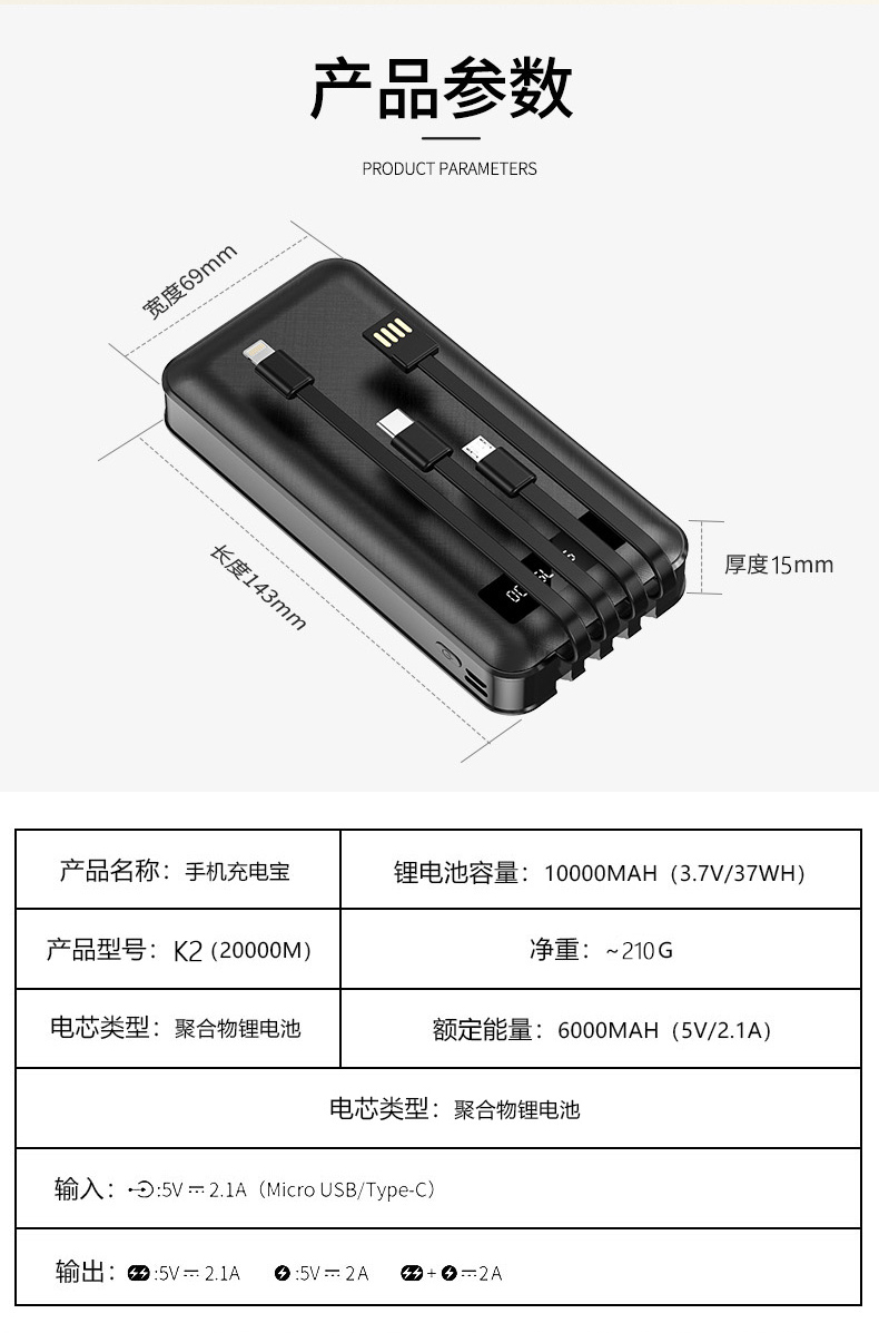• 商品名称:充电宝适用于华为小米vivo苹果OPPO便携2万毫安快充移动电源10000