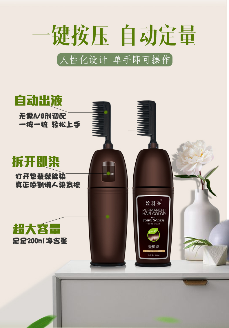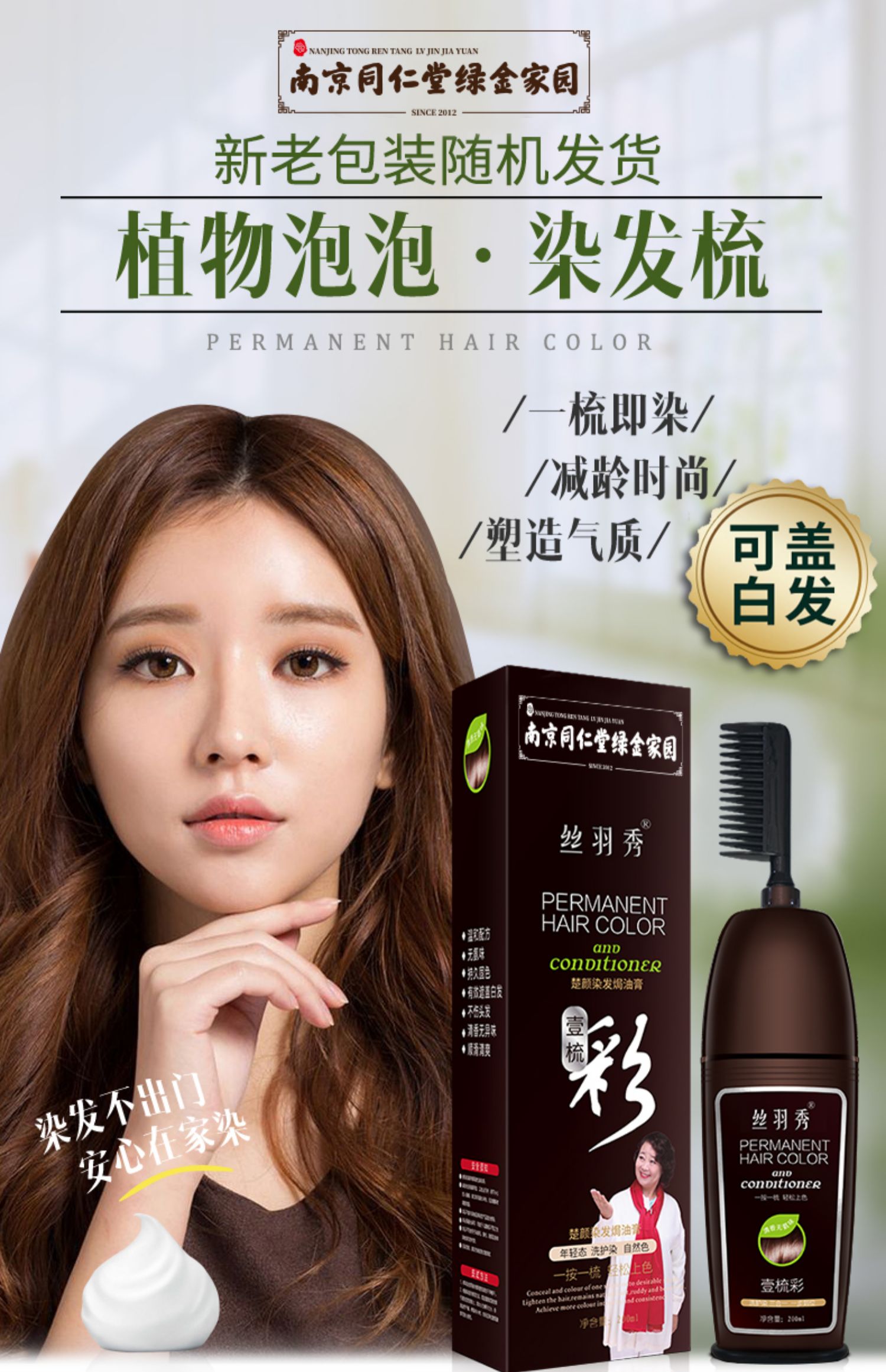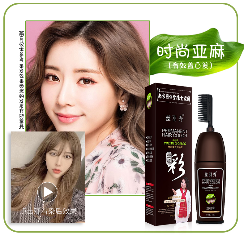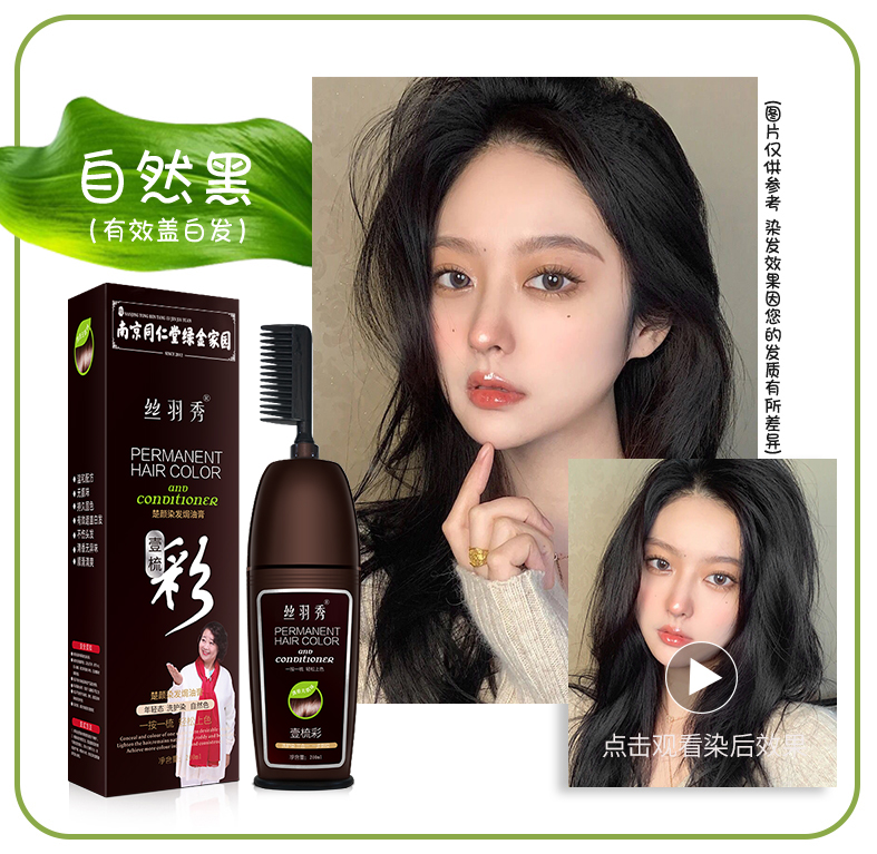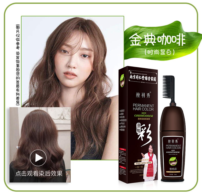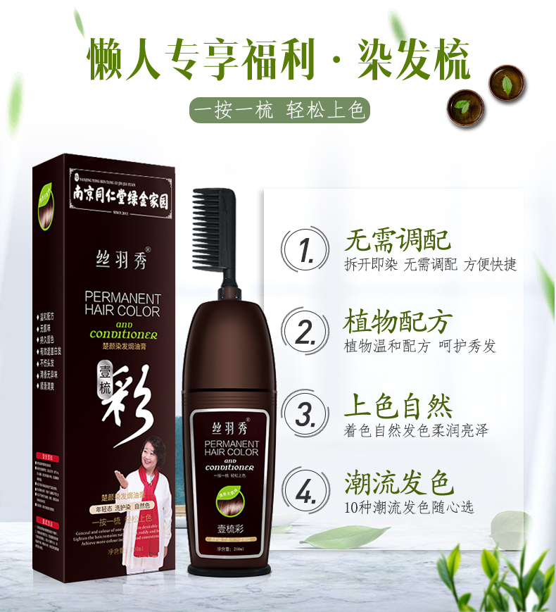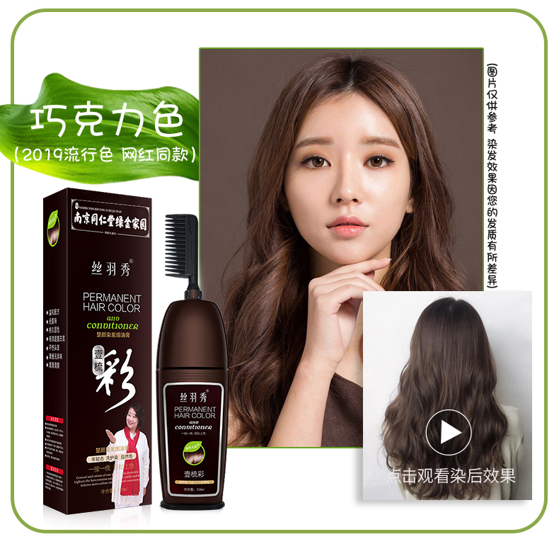 • 商品名称:同仁堂一梳彩染发剂自己在家染发植物染发膏染发梳2021流行色泡沫