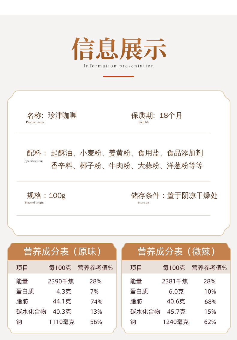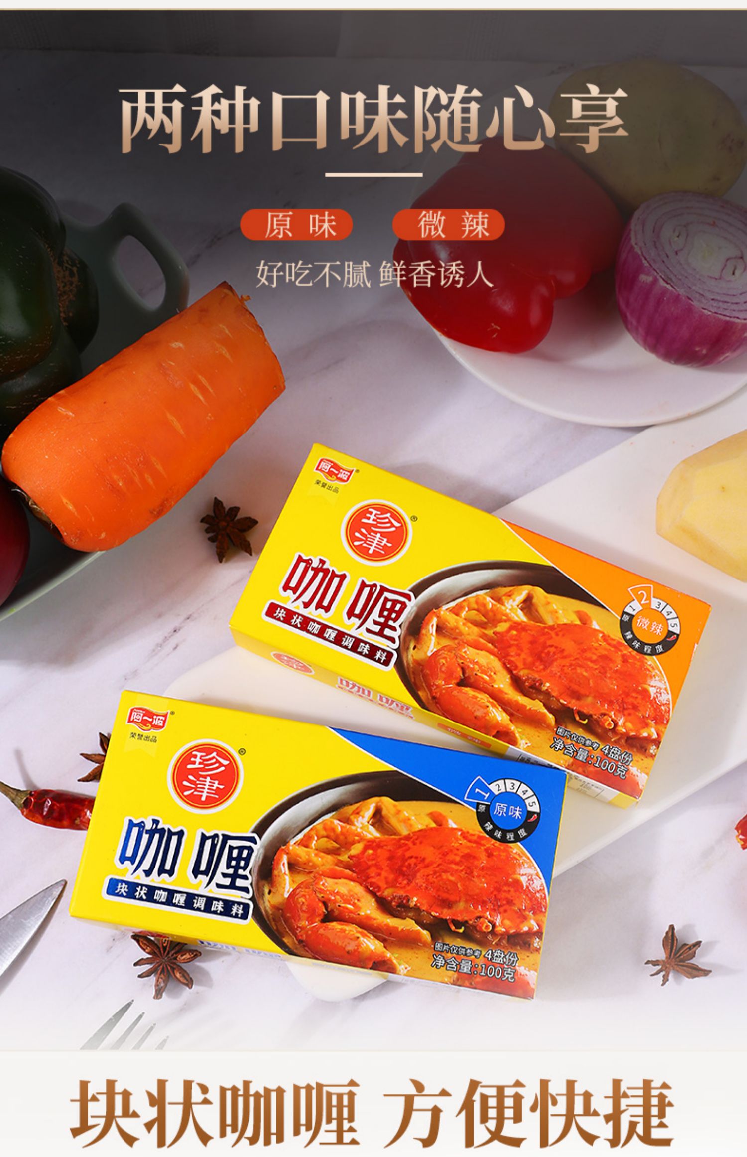 • 商品名称:阿一波珍津咖喱块100g×3盒 咖喱酱儿童咖喱鱼蛋饭料理调味料
