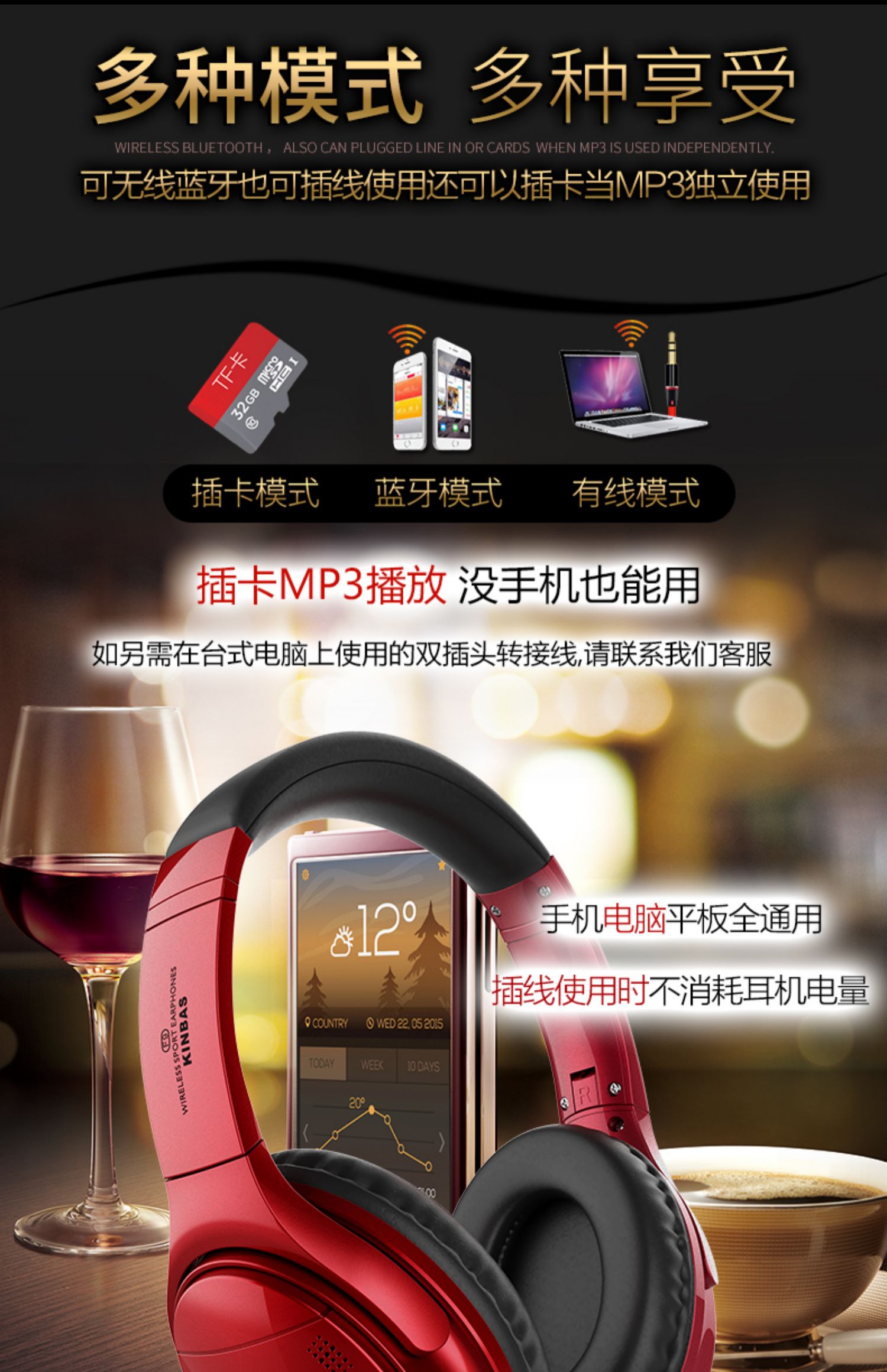 • 商品名称:高端无线蓝牙耳机头戴式全包耳手机电脑通用耳麦男女生炫酷超长续航吃鸡听歌游戏运动跑步降噪带麦电竞影巨人