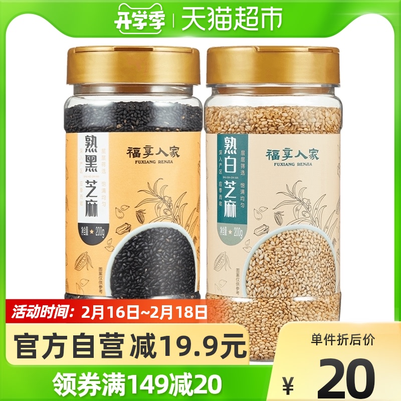 • 商品名称:福享人家熟黑芝麻200g和熟白芝麻200g五谷杂粮粗粮即食新鲜免洗