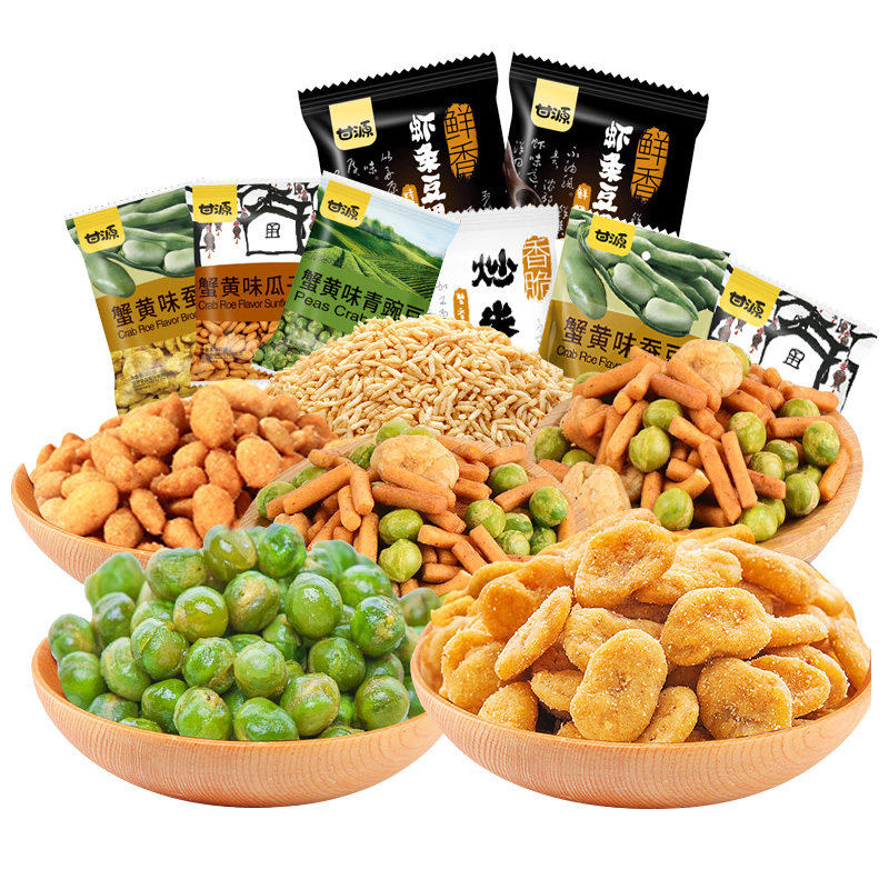 • 商品名称:甘源蚕豆青豆瓜子仁花生虾条豆果组合装蟹黄香辣味小包装散装零食