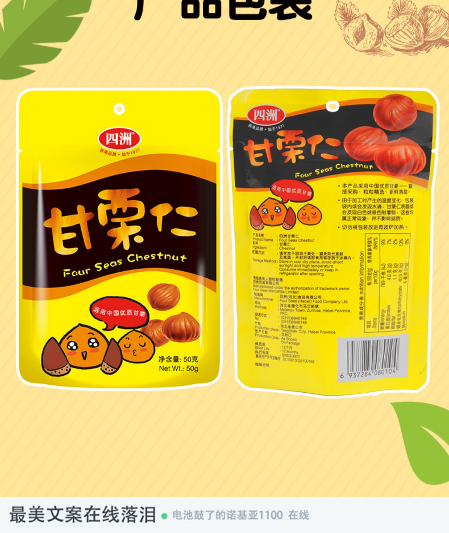 • 商品名称:四洲有机板栗仁甘栗仁50g*10包坚果休闲零食即食去壳甜油栗子熟制