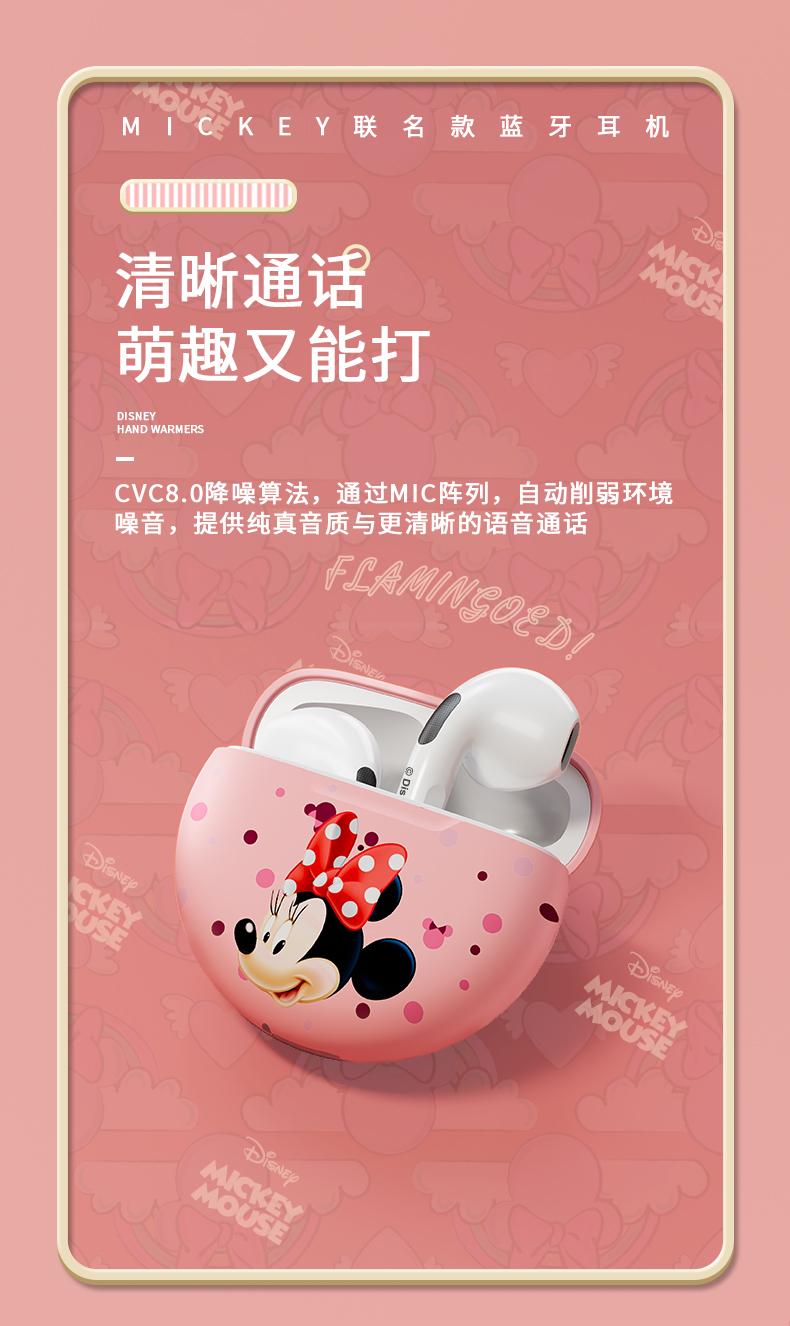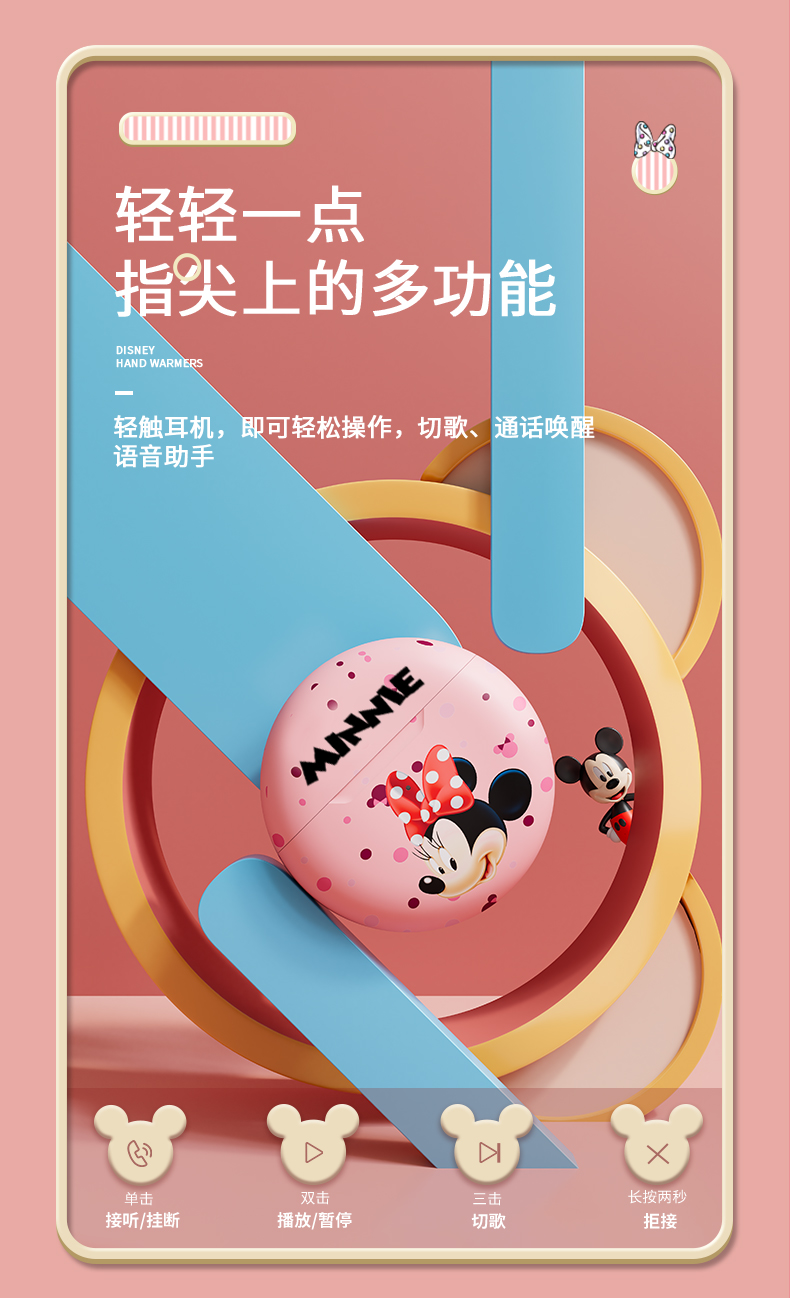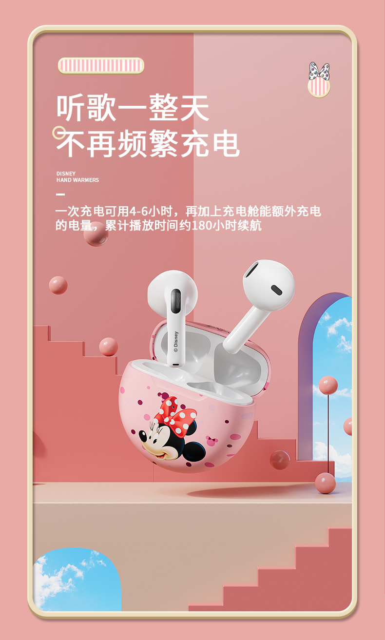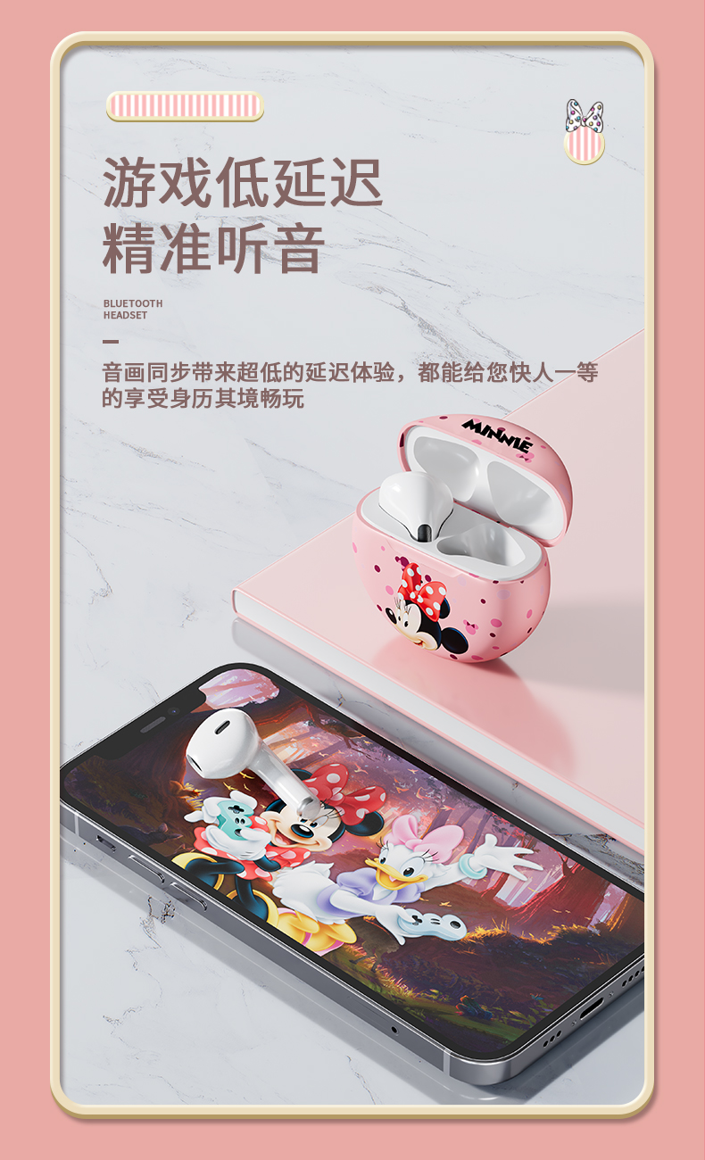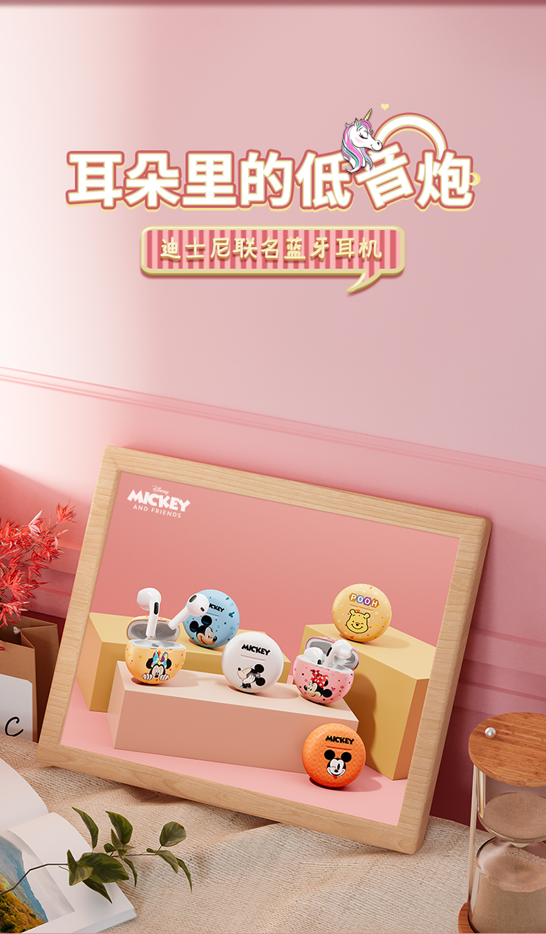 • 商品名称:迪士尼真无线蓝牙耳机新款高续航女生降噪小型适用苹果无线耳机可爱卡通女款运动耳机高音质入耳式游戏耳机