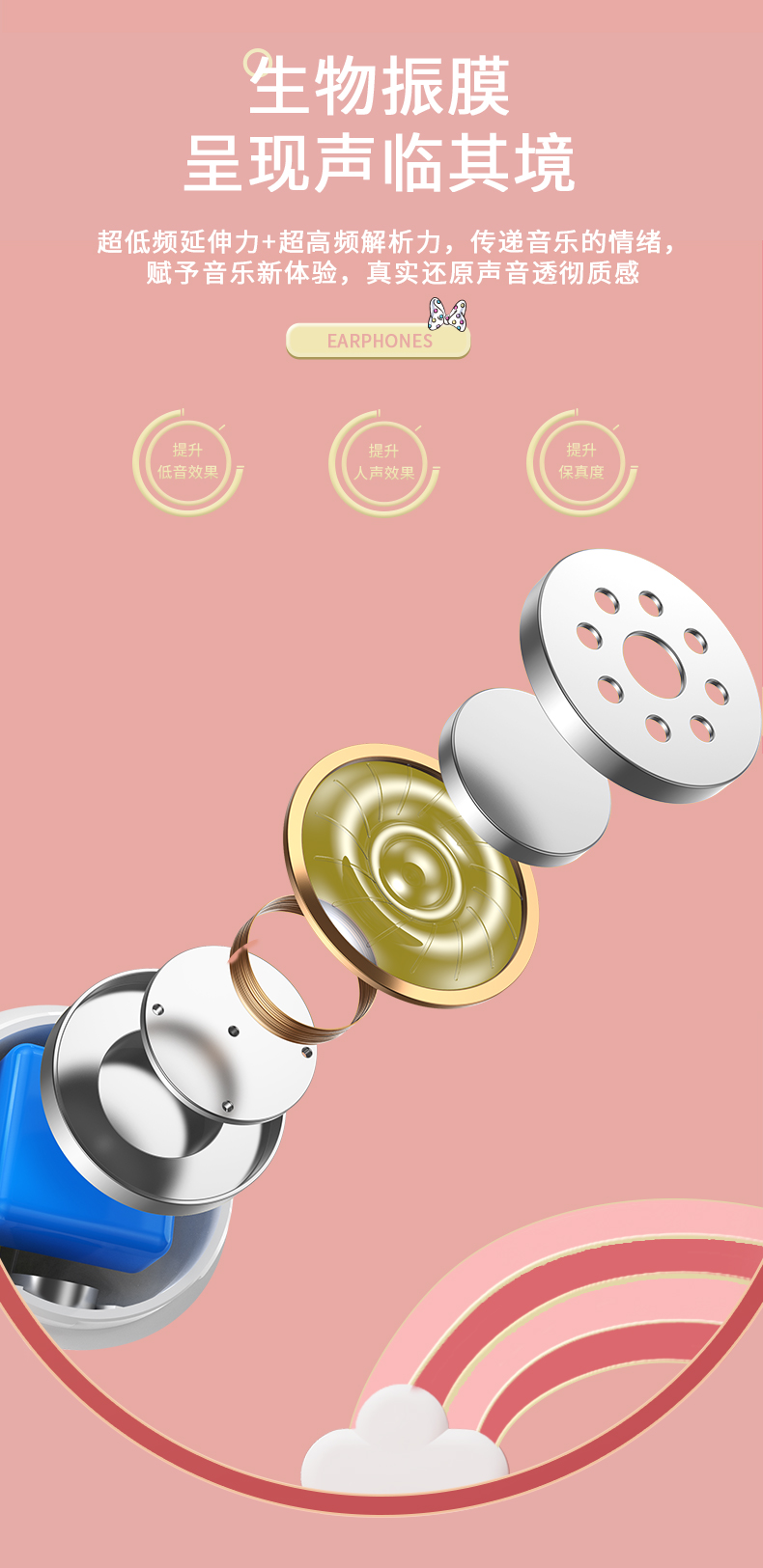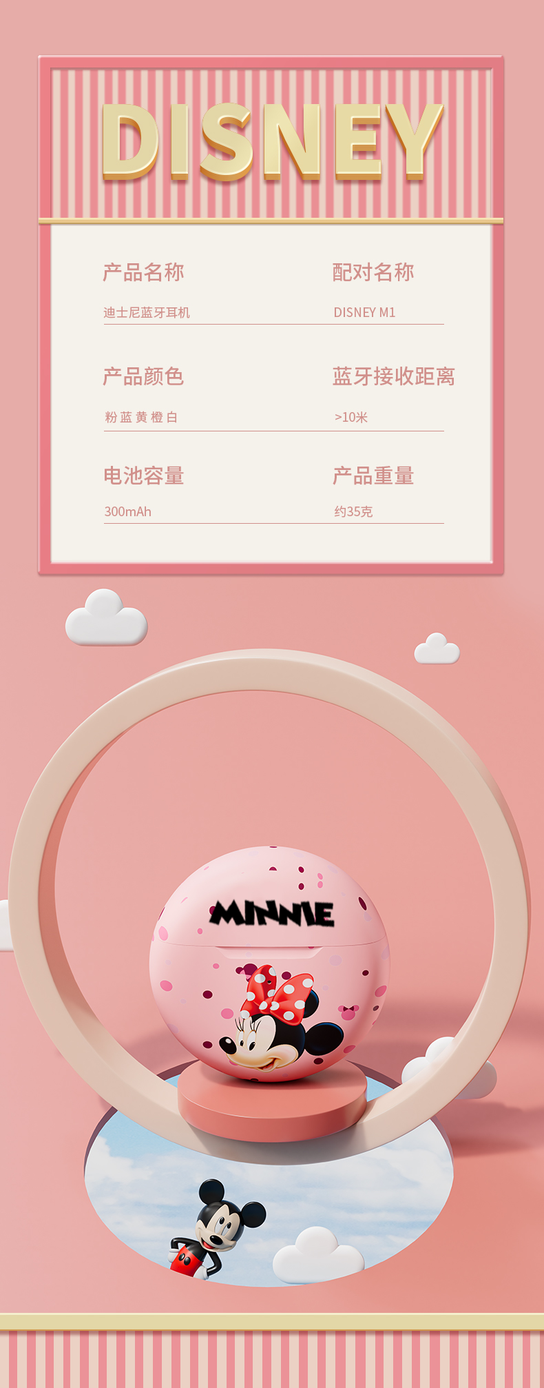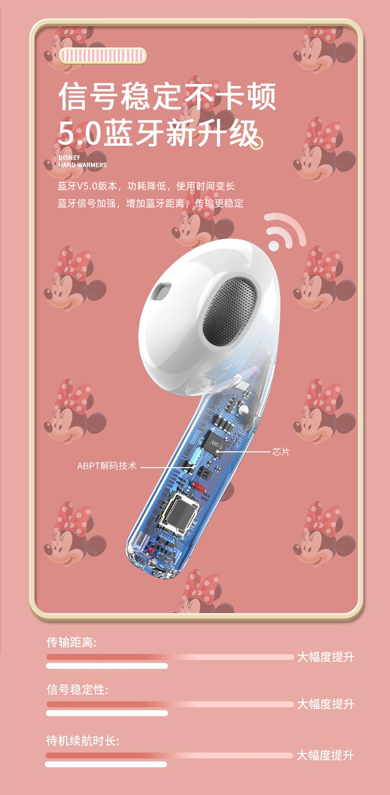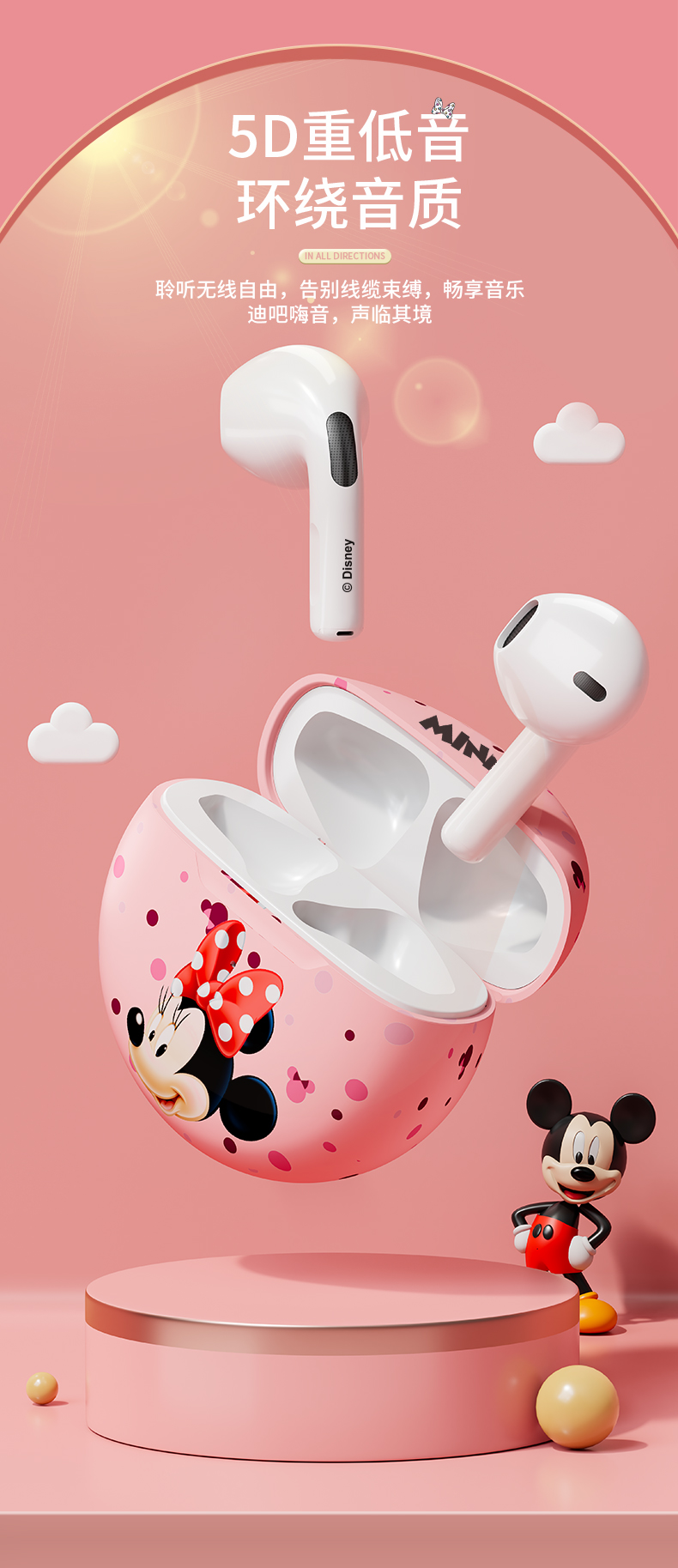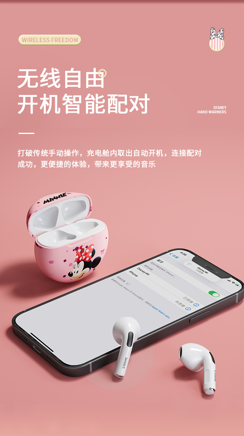 • 商品名称:迪士尼真无线蓝牙耳机新款高续航女生降噪小型适用苹果无线耳机可爱卡通女款运动耳机高音质入耳式游戏耳机