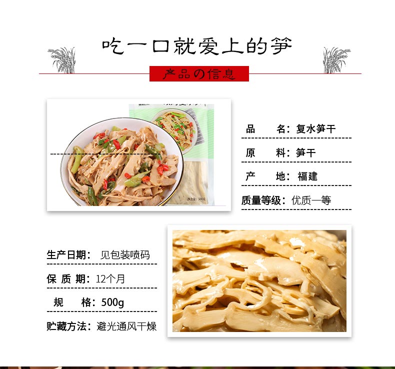 • 商品名称:菇里巴巴 福建笋干500克免泡发新鲜竹笋炭烤笋尖农家自制嫩笋干货