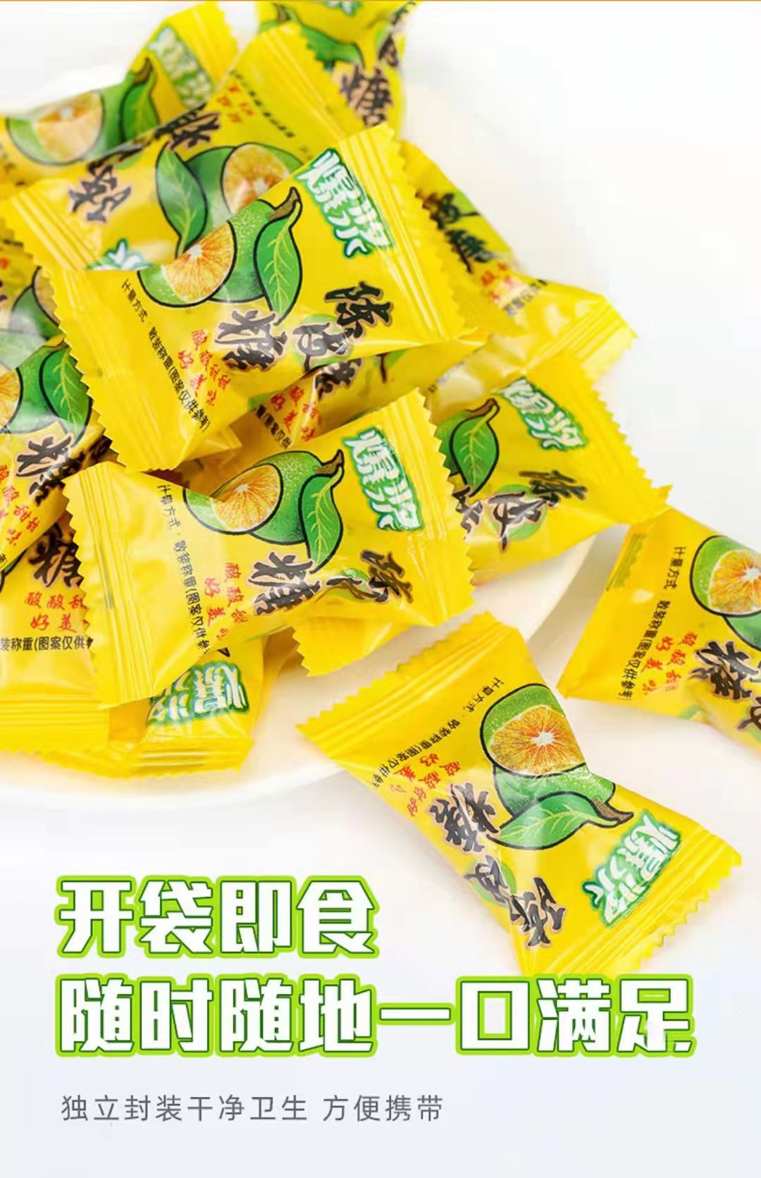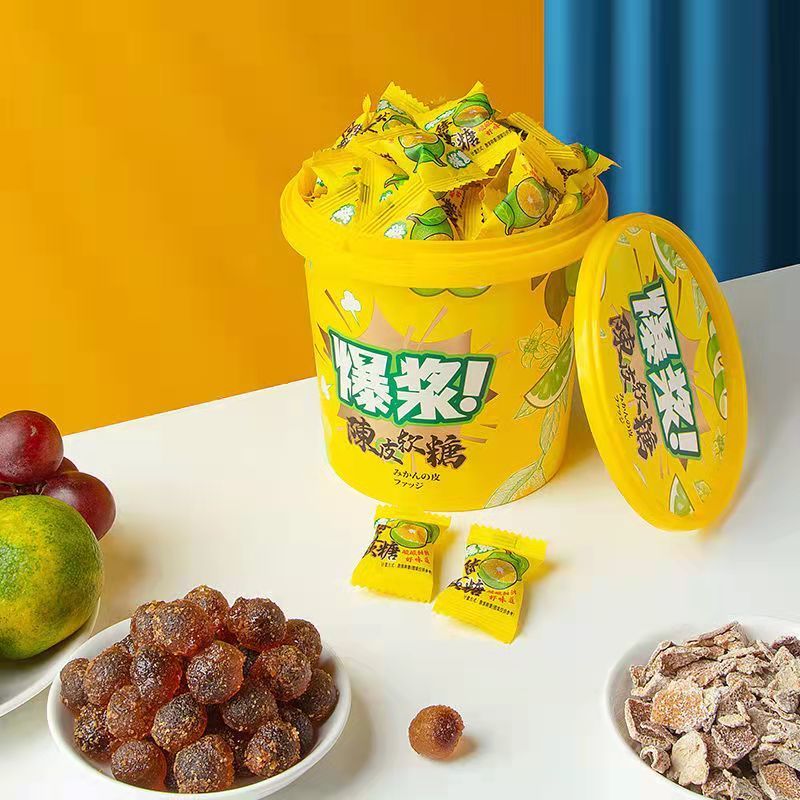• 商品名称:爆浆陈皮糖软糖果话梅喜糖水果酱夹心儿童零食休闲食品散装批发