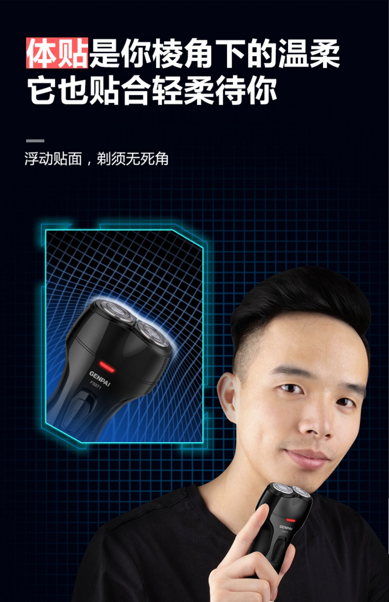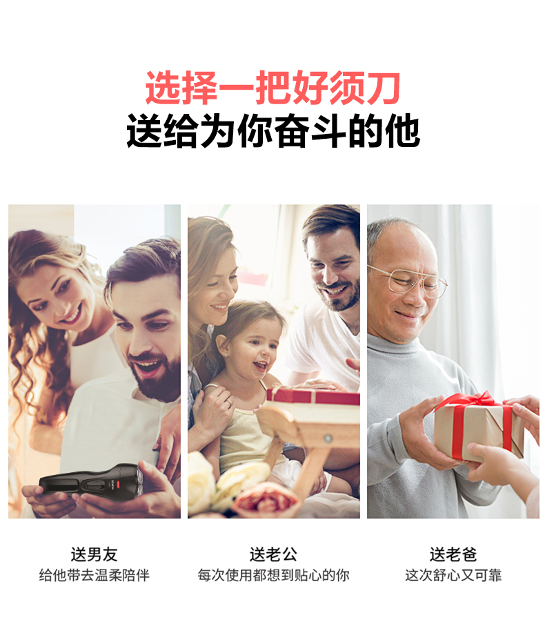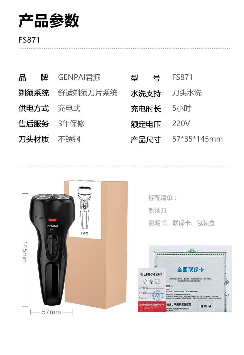 • 商品名称:君派3D剃须刀电动男士刮胡刀智能充电式水洗双头胡须刀正品FS871