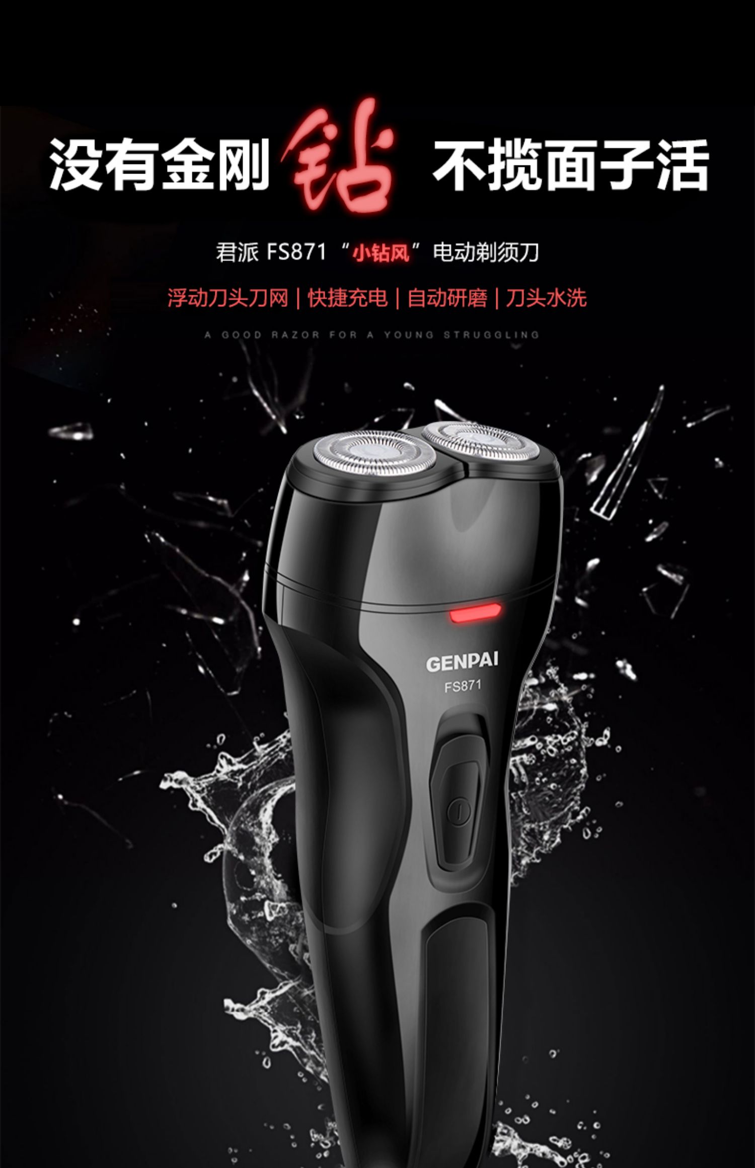 君派3D剃须刀电动男士刮胡刀智能充电式水洗双头胡须刀正品FS871