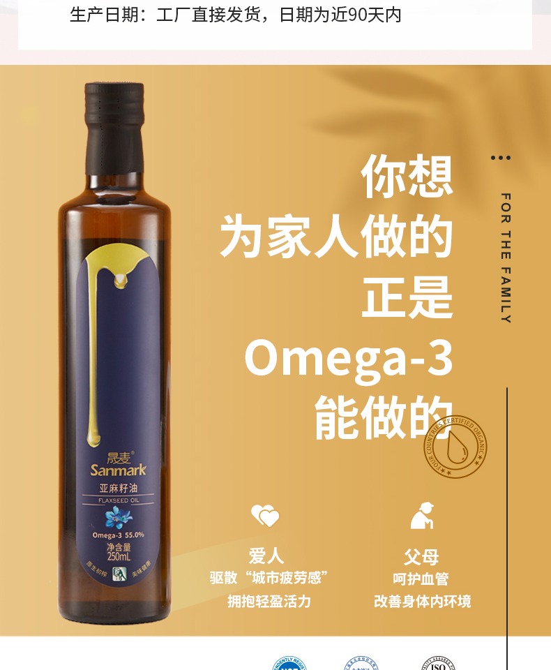 • 商品名称:晟麦亚麻籽油250ml 冷榨一级食用油低温亚麻油官方旗舰店正品初榨