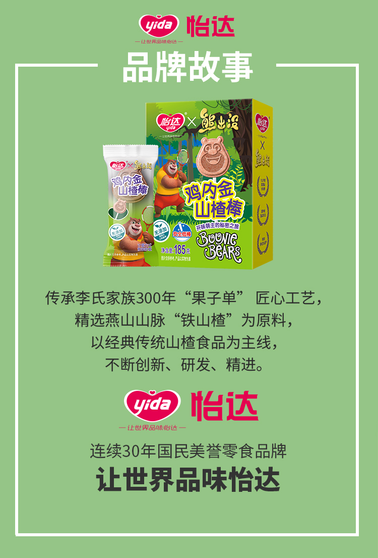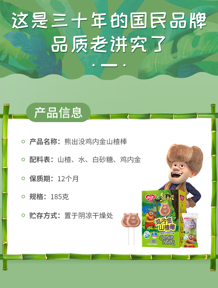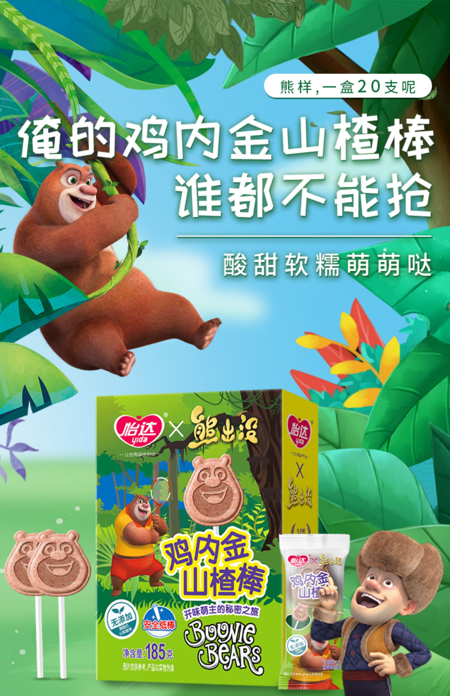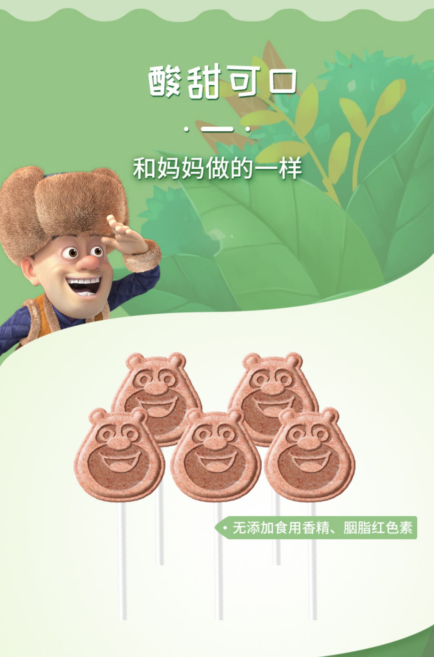 • 商品名称:怡达熊出没鸡内金山楂棒棒糖小包装儿童健康无添加宝宝婴儿小零食