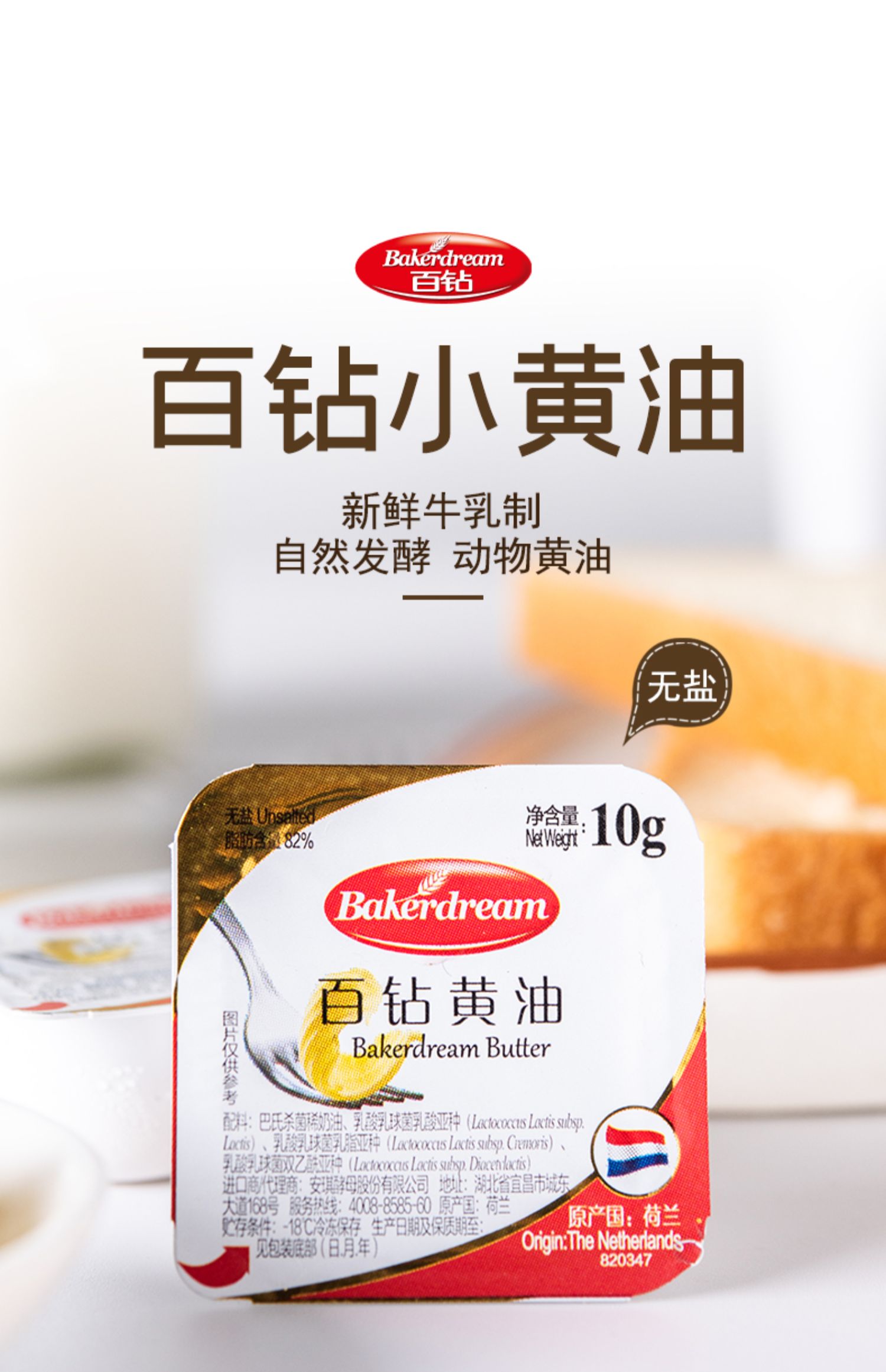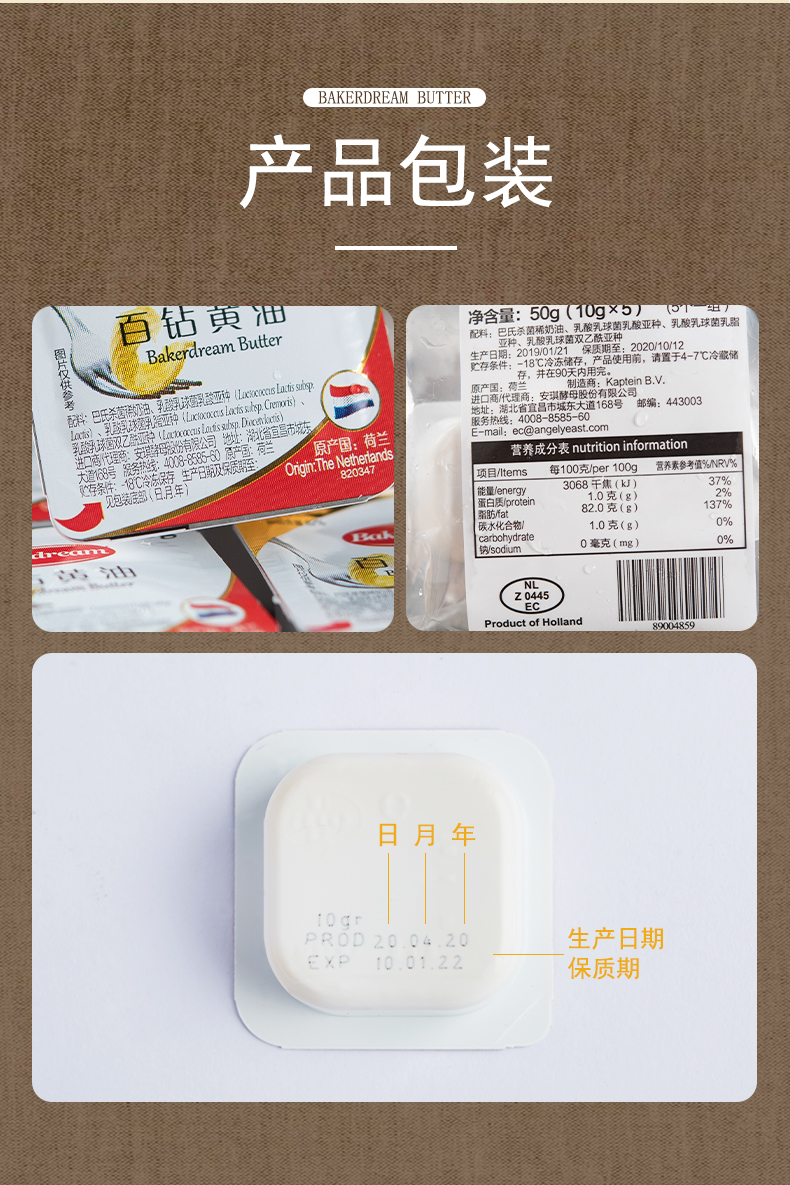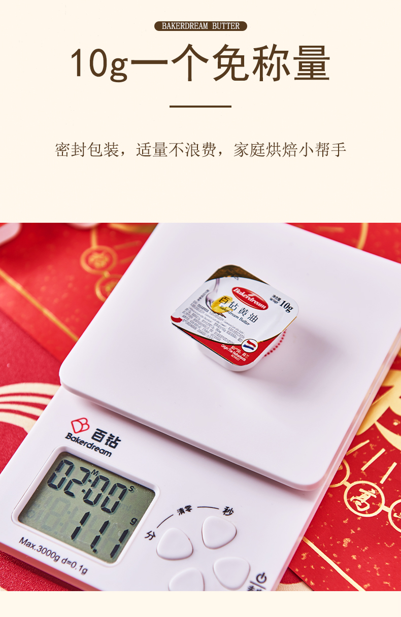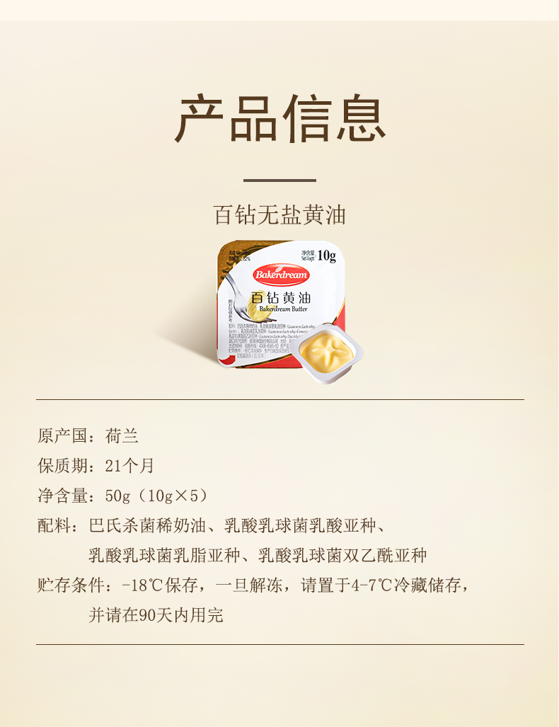 • 商品名称:百钻无盐黄油10g*20粒小包装食用动物黄油家用做面包蛋糕烘焙材料