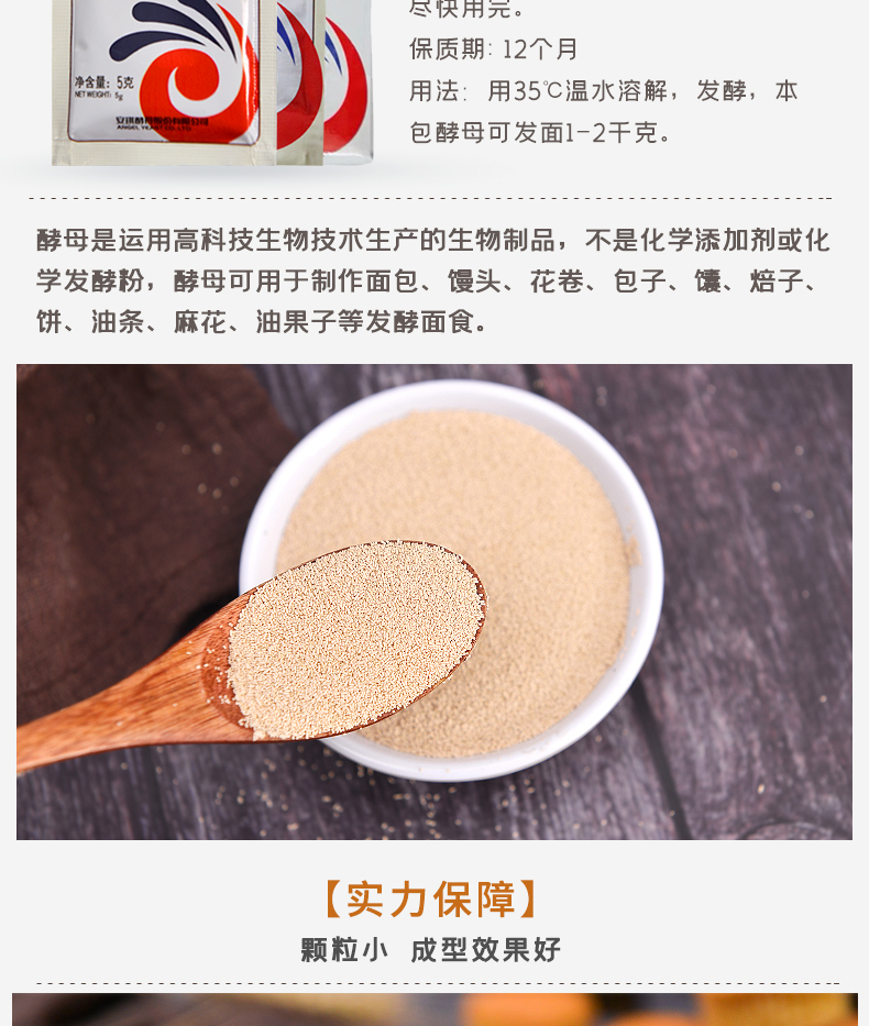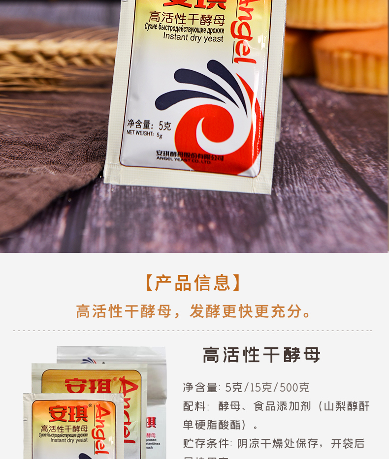 • 商品名称:安琪酵母家用干酵母小包装低糖高活性馒头包子发酵粉5g15g100g500