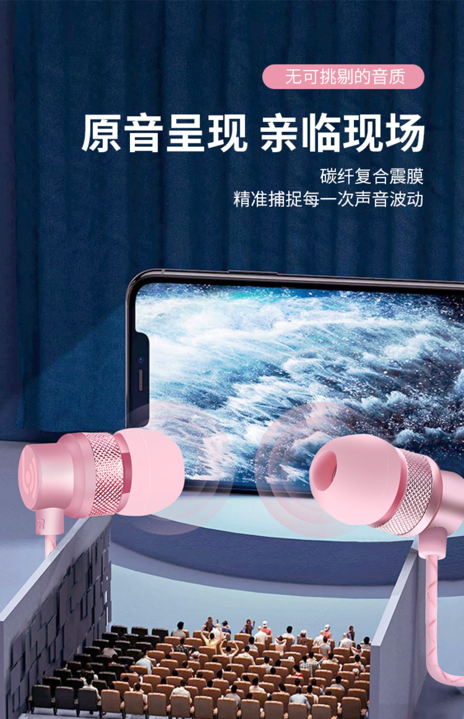 • 商品名称:耳机有线入耳式女生韩版高音质不伤耳全民k歌手机oppo vivo小米通用华为圆孔金属重低音