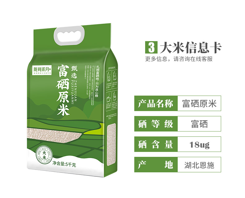 • 商品名称:陇间柒月富硒大米5kg恩施2.5kg新米长粒香米10斤油米聚财员工福利