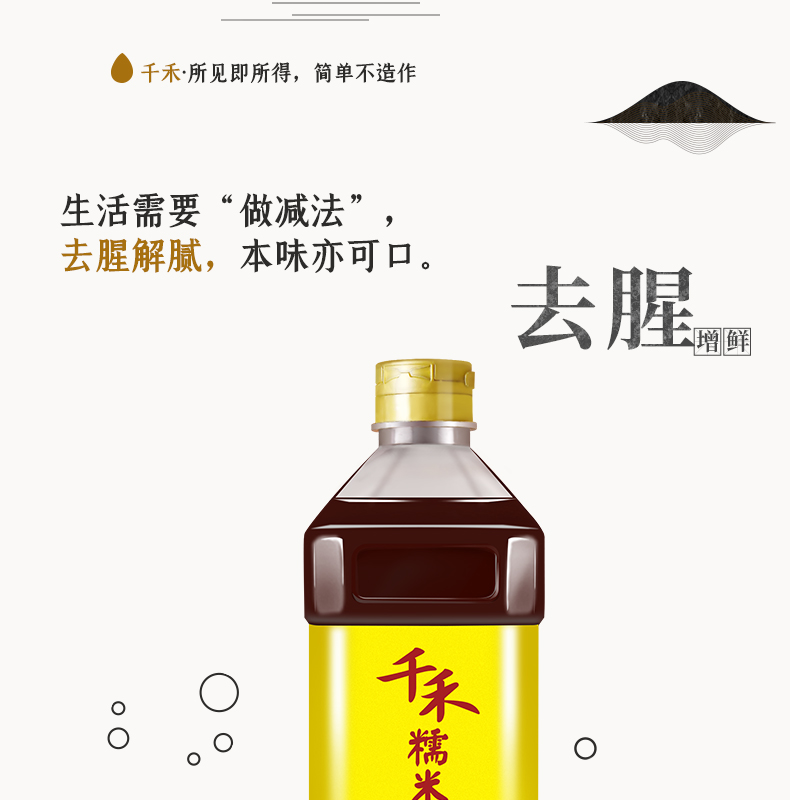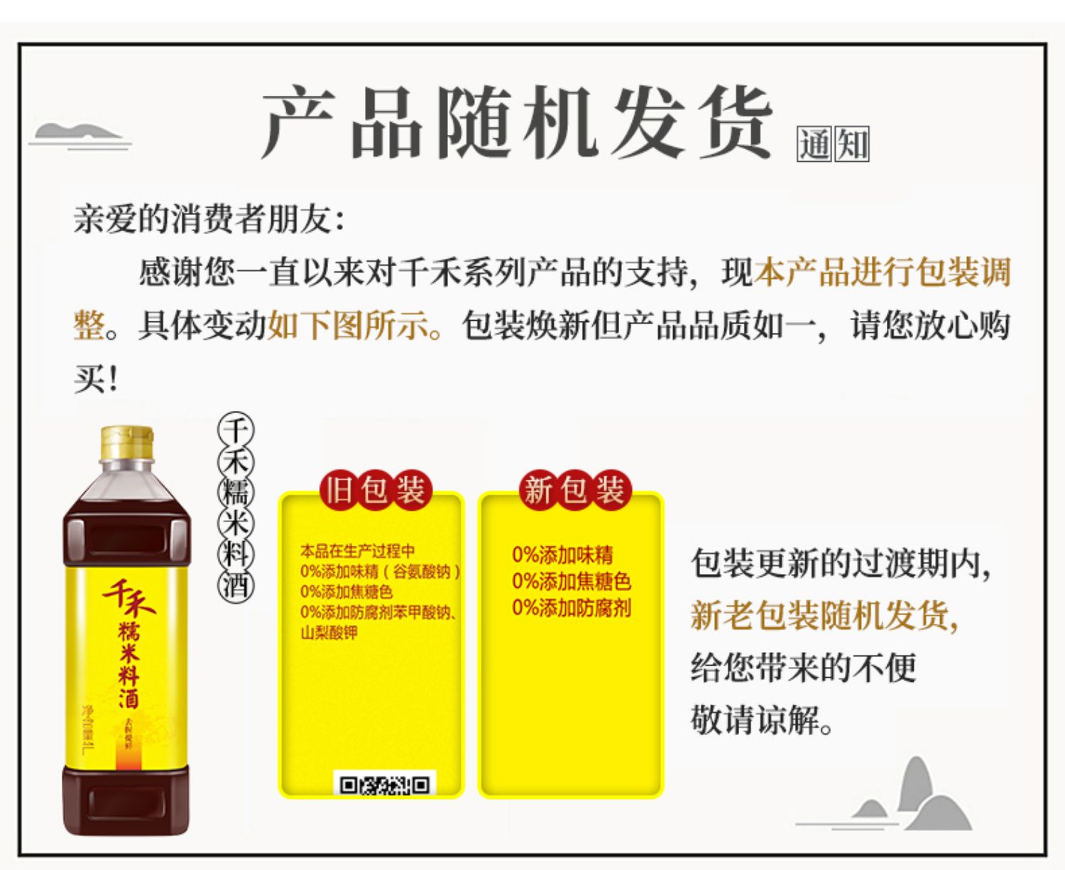 • 商品名称:千禾糯米料酒1L 去腥解腻增鲜提味 烹饪清蒸调味料酒