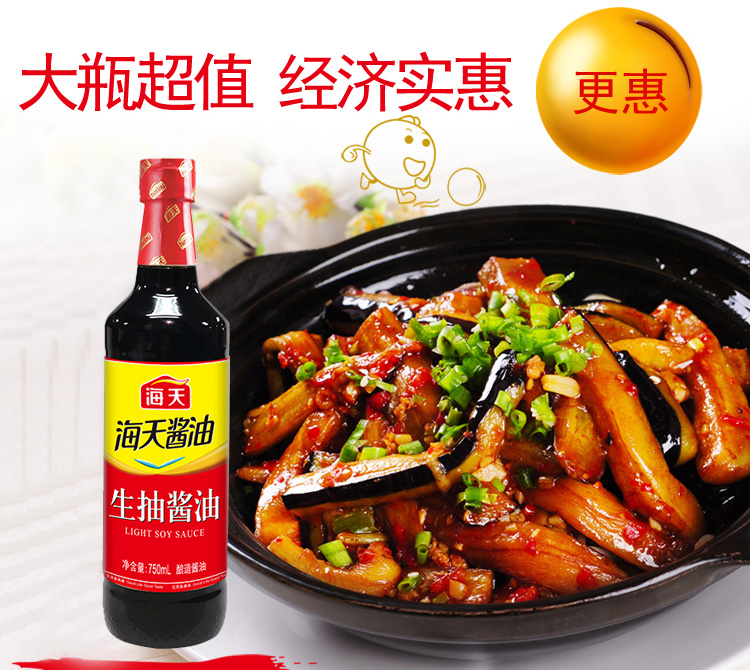 • 商品名称:海天生抽酱油750ml酿造黄豆酱油烧炒提鲜火锅烧烤凉拌调味料