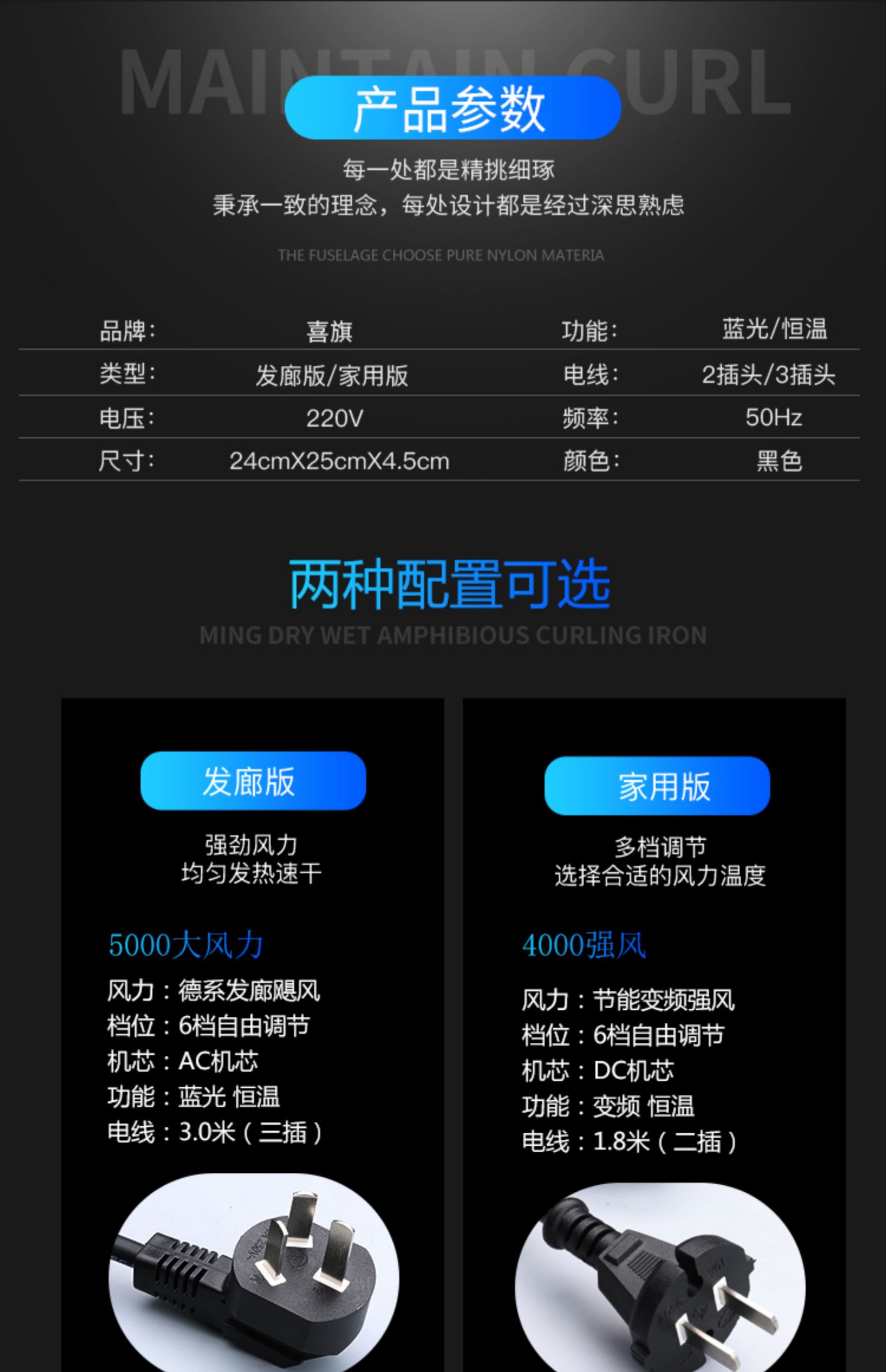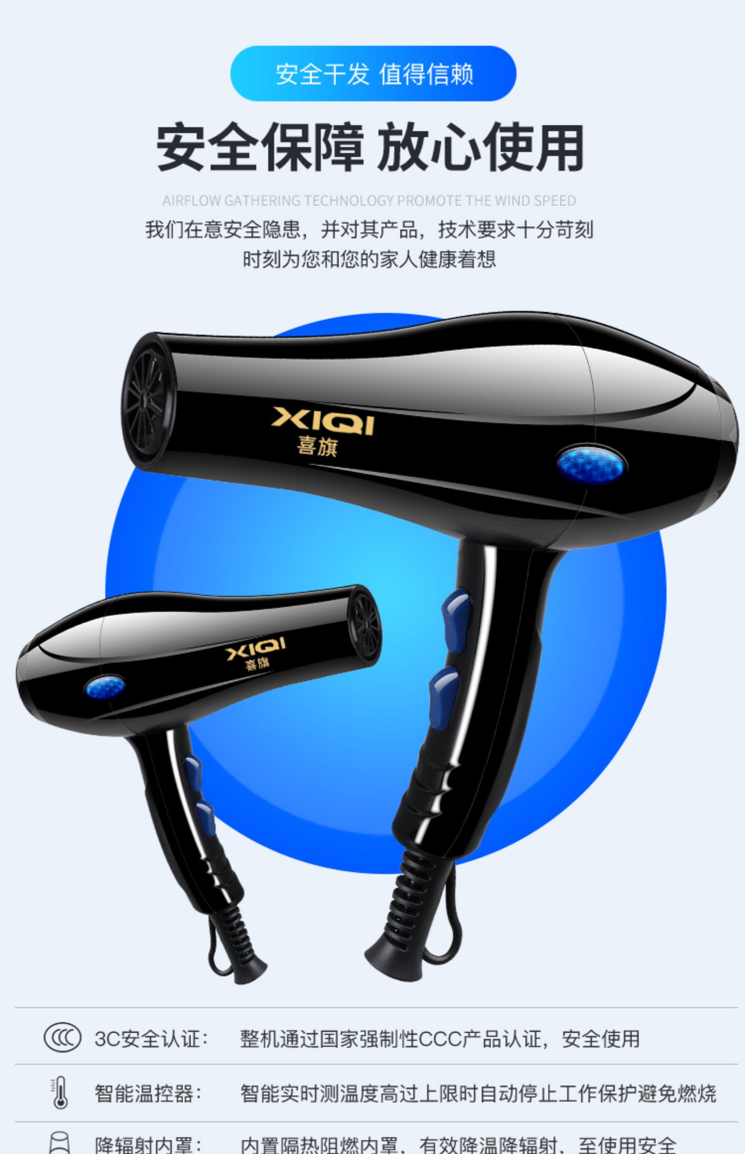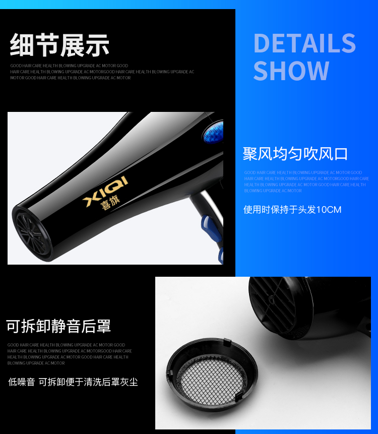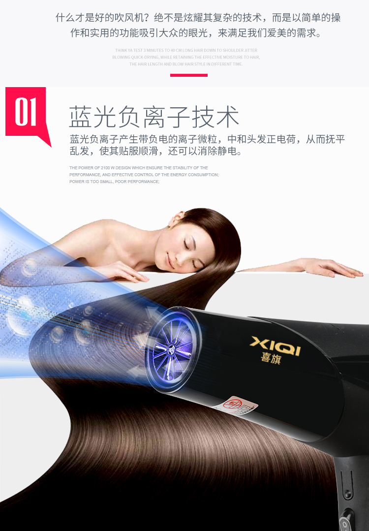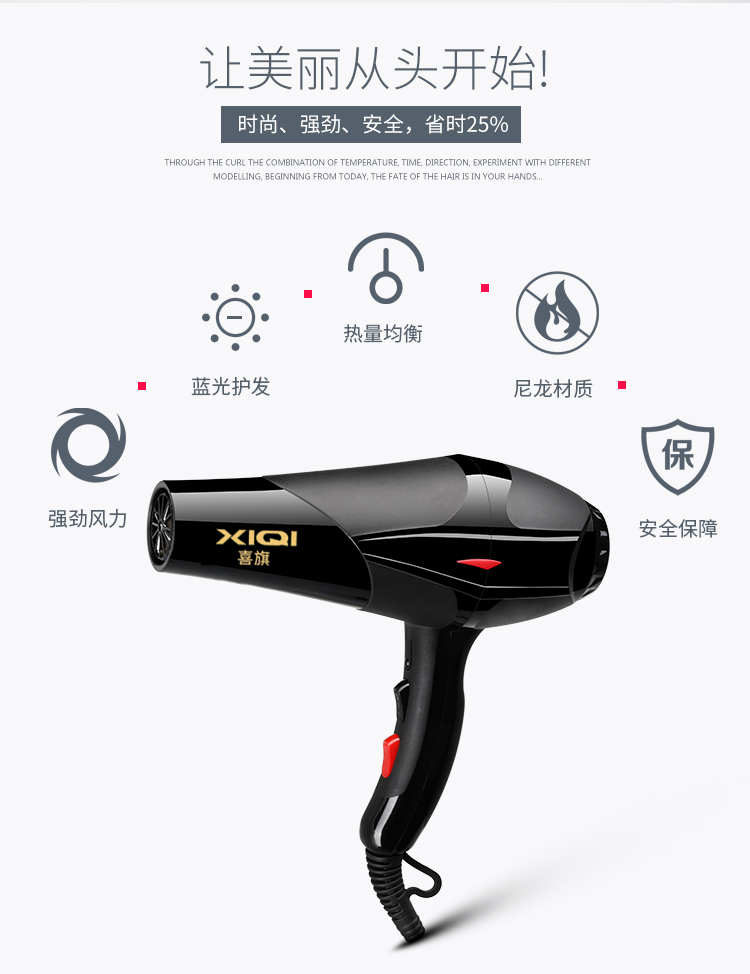 • 商品名称:喜旗吹风机家用理发店大功率发廊冷热风负离子宿舍电吹风筒不伤发
