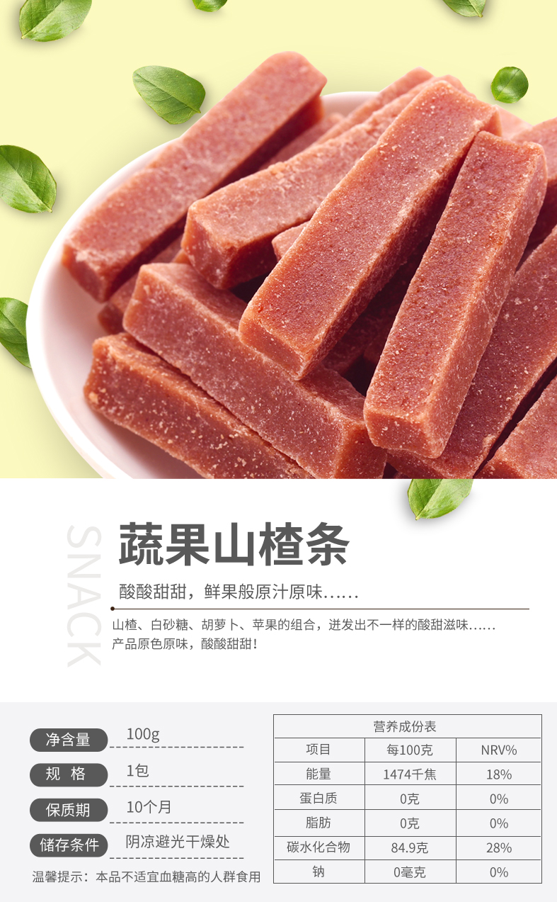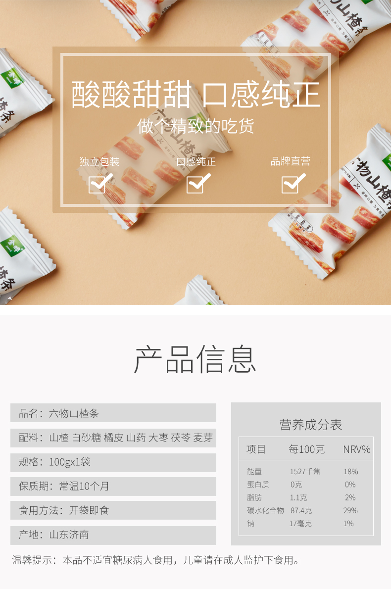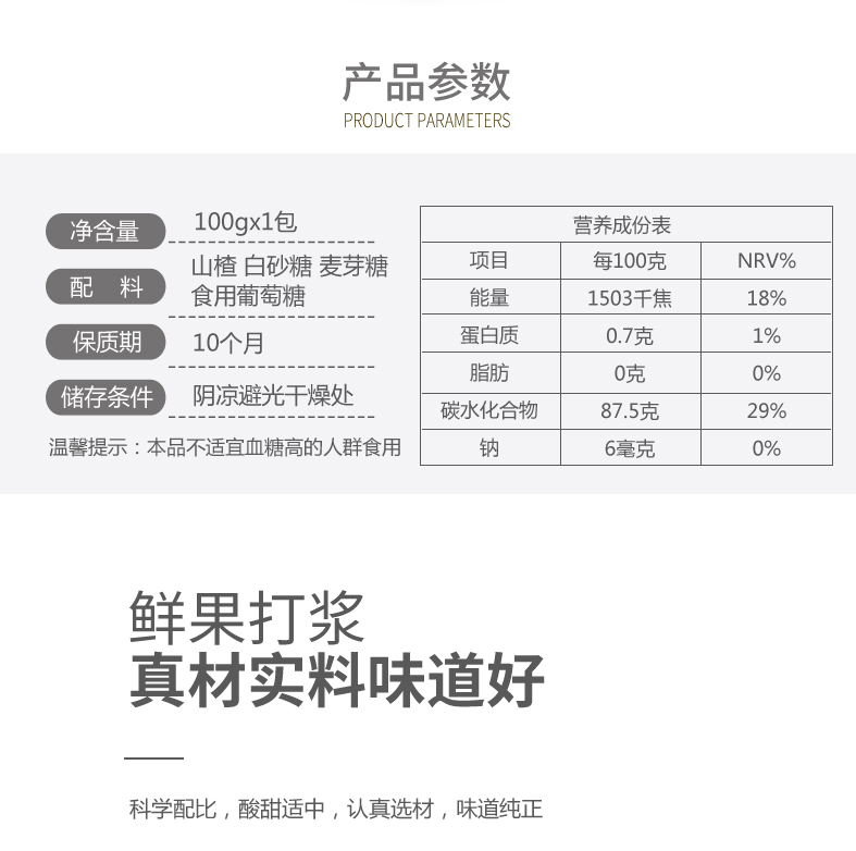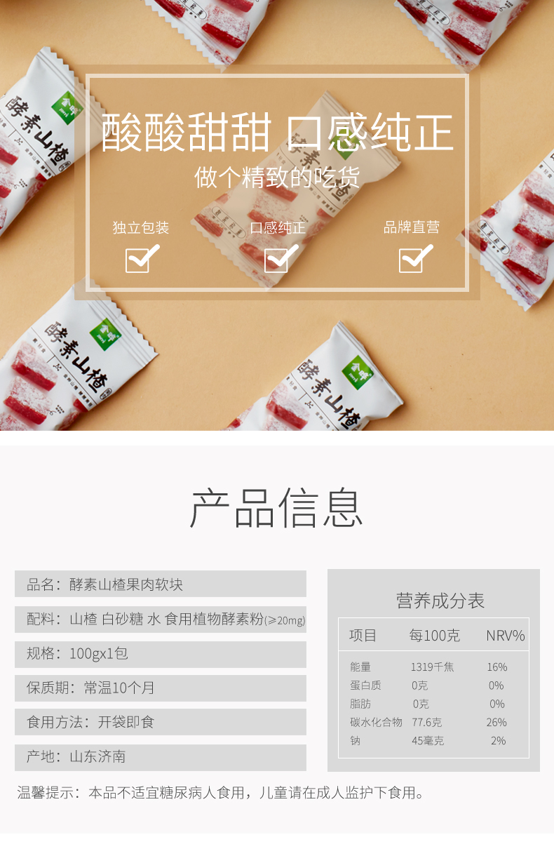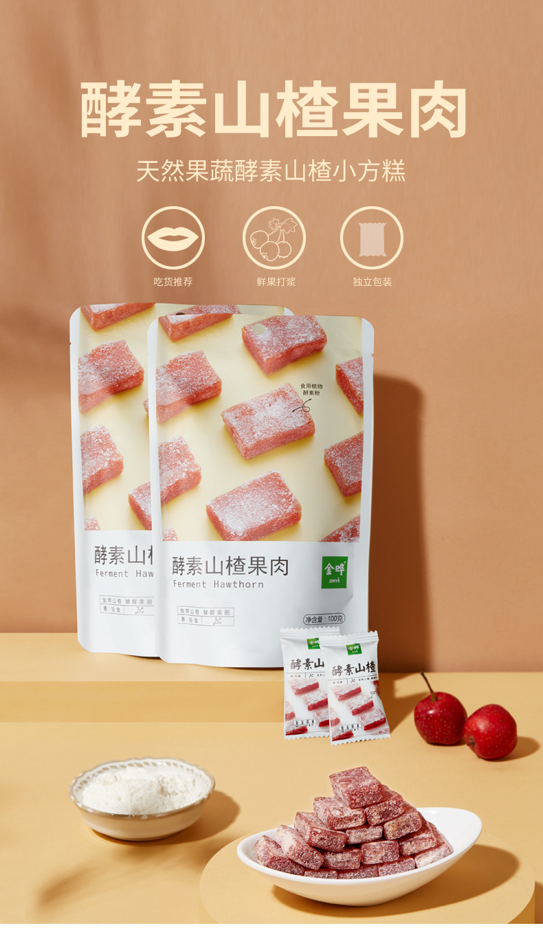 • 商品名称:金晔酵素山楂果肉年货零食蜜饯果脯山楂糕100gx1袋