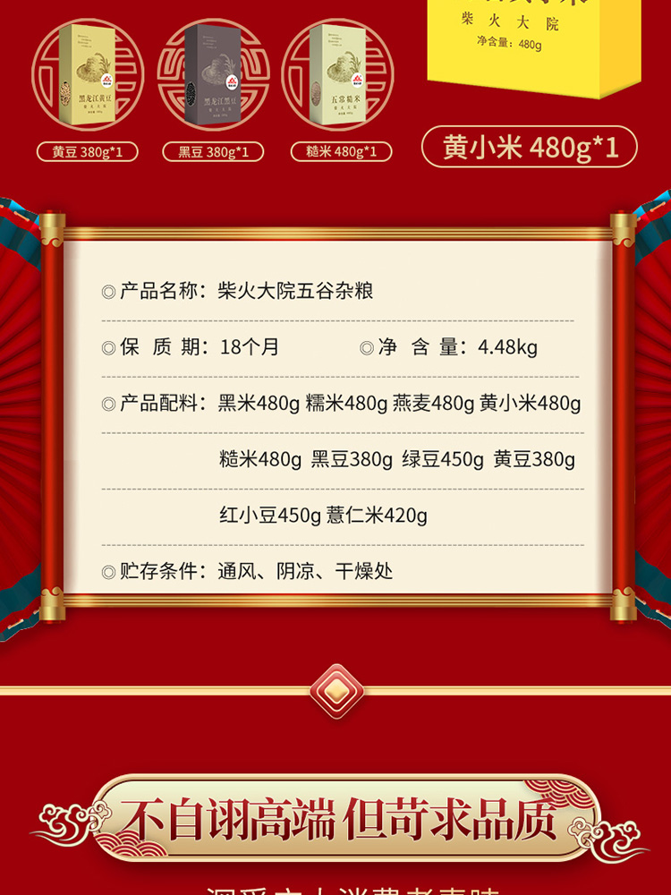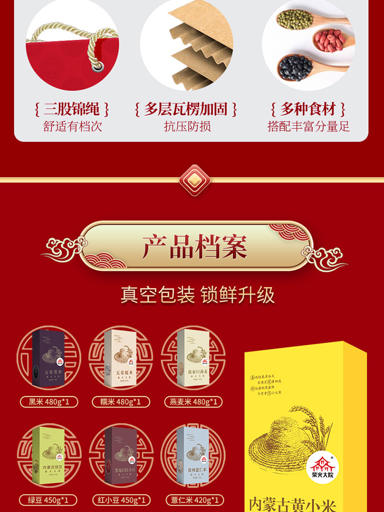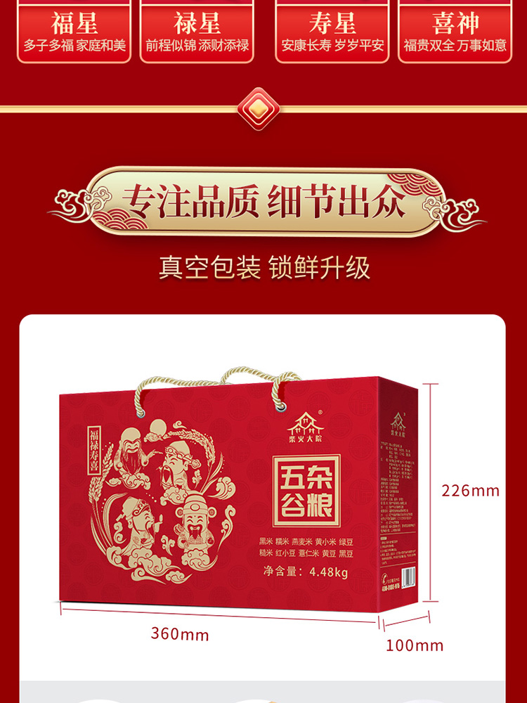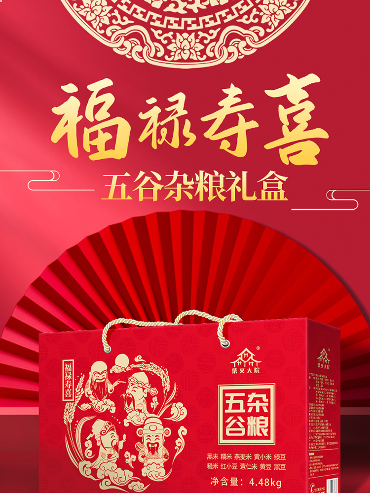 • 商品名称:包邮 柴火大院福禄寿喜十种杂粮礼盒4.48kg五谷杂粮 年货送礼团购