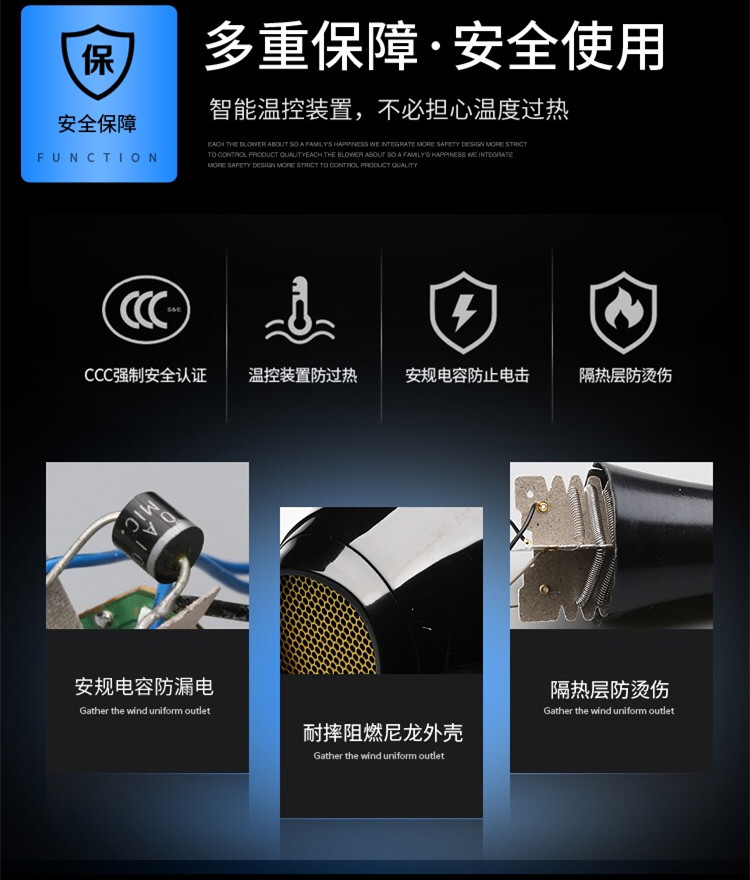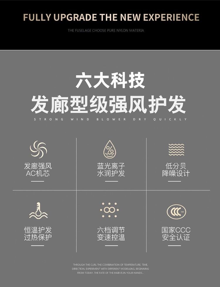 • 商品名称:家用理发店大风力冷热发负离子护发恒温发廊大功率宿舍电吹风机