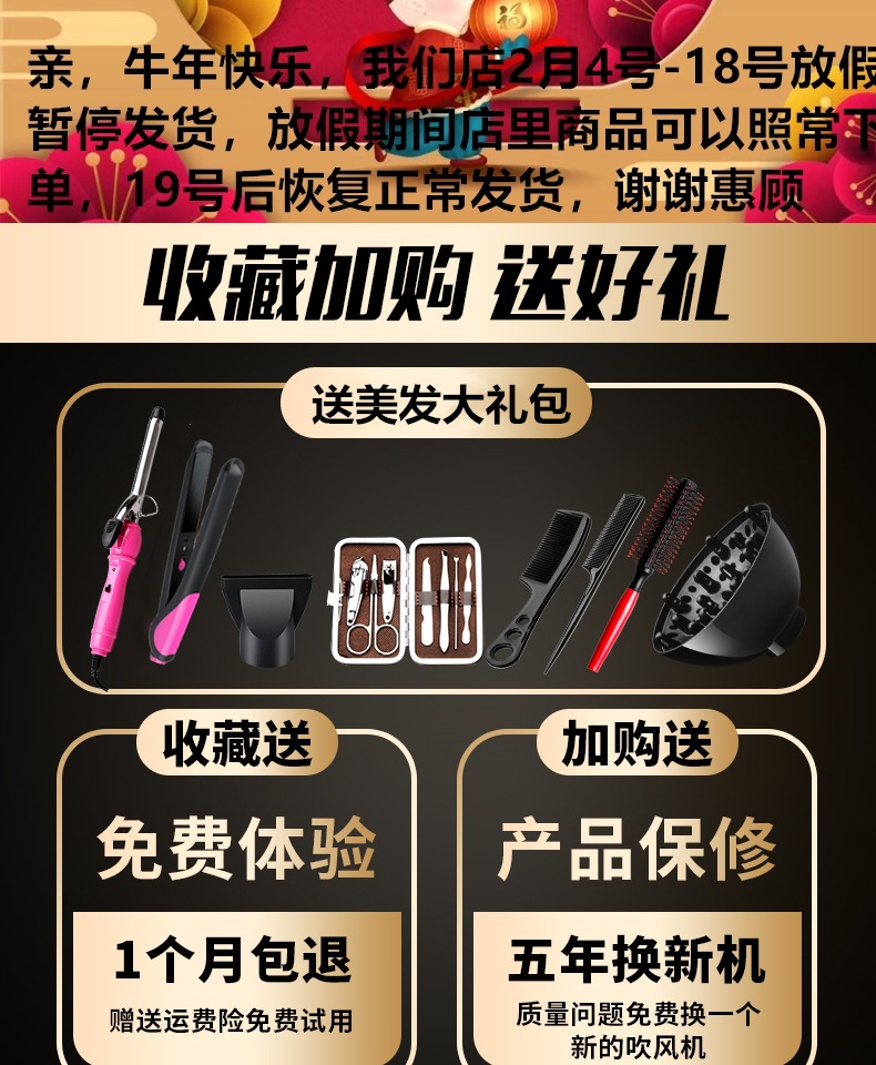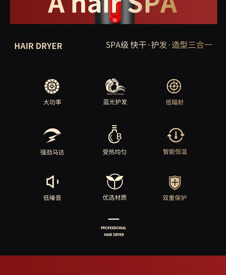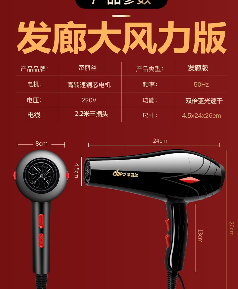 • 商品名称:发廊专用大功率电吹风机蓝光负离子家用理发店冷热风宿舍吹风筒