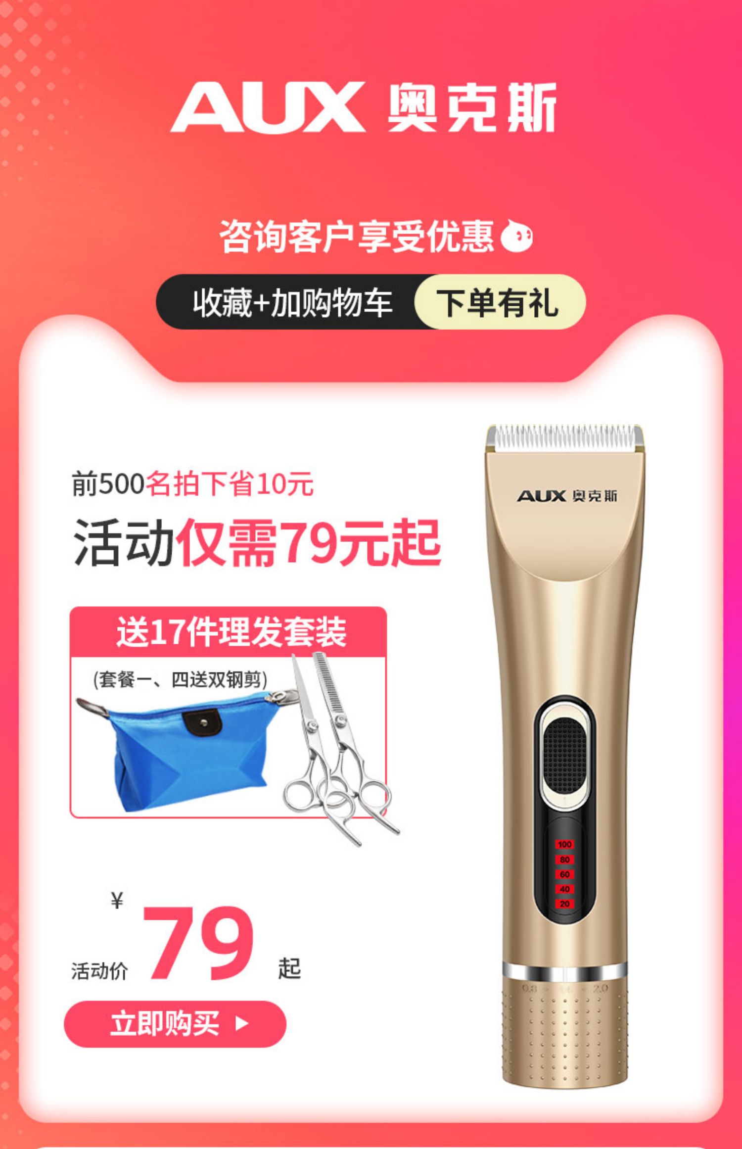 • 商品名称:奥克斯理发器电推剪头发神器专业电推子大人电动剃头刀自己家用男