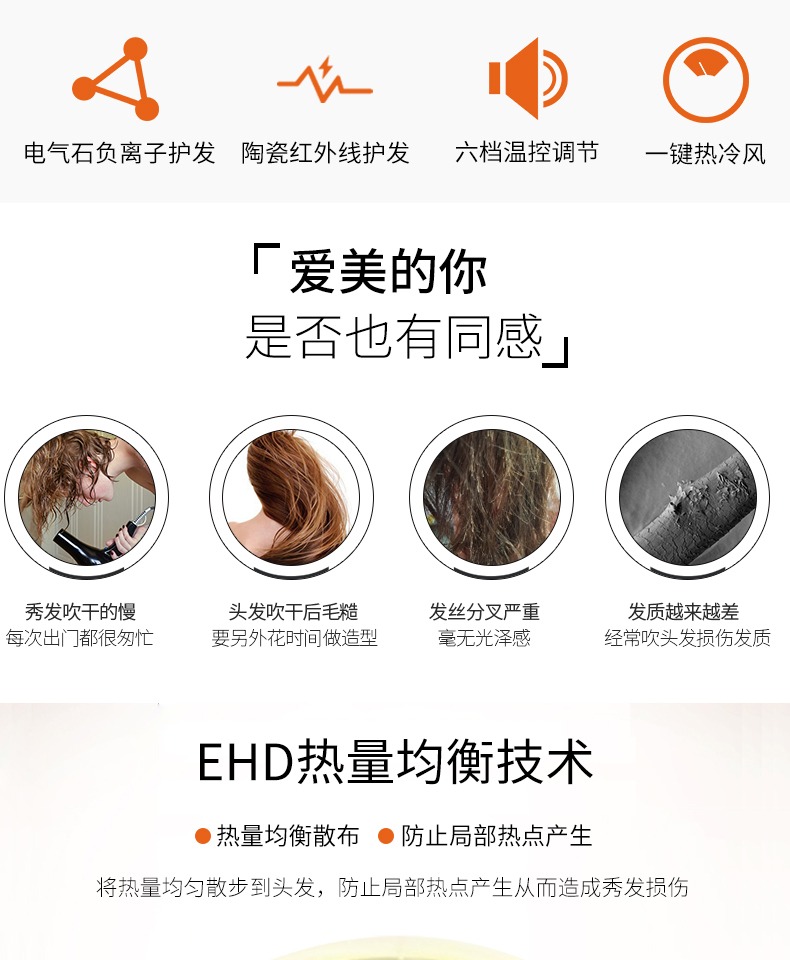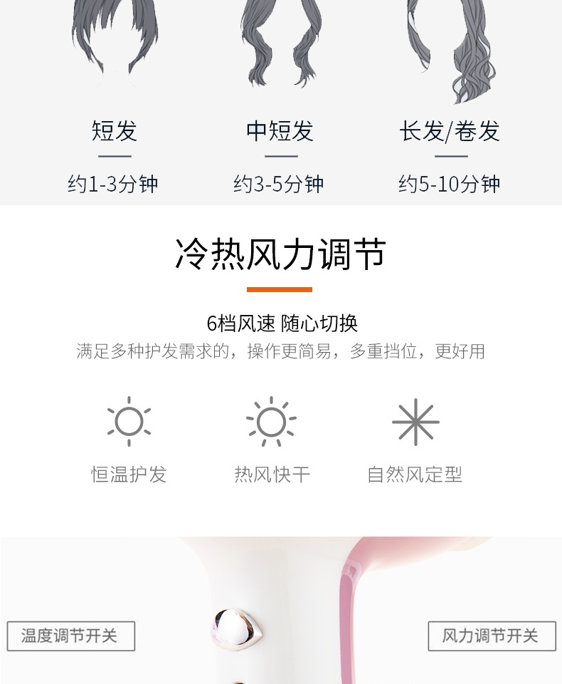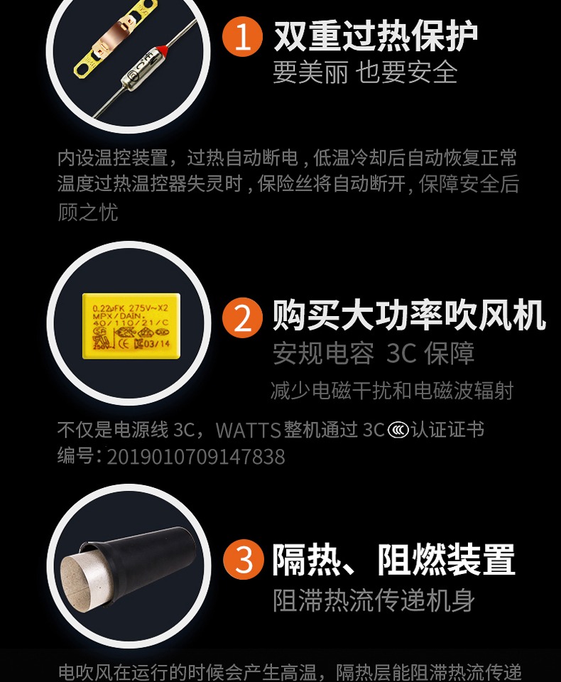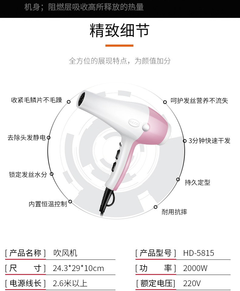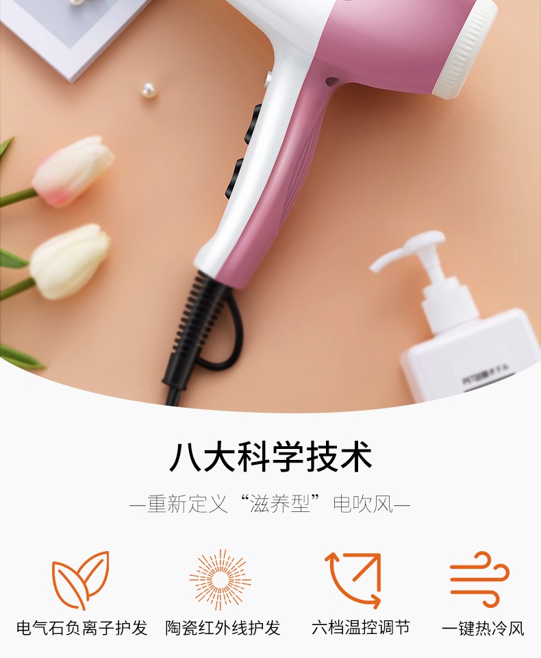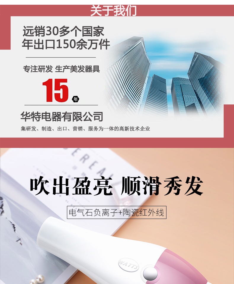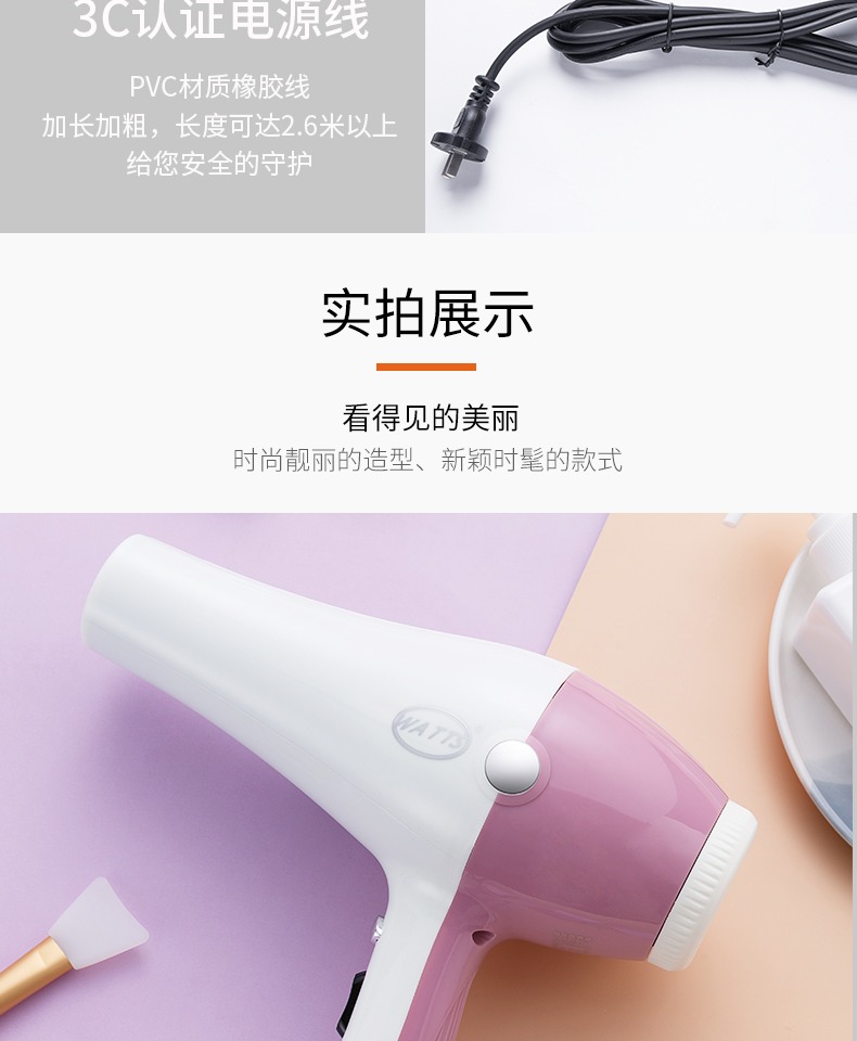 • 商品名称:WATTS电吹风机家用2000W大功率负离子冷热风恒温酒店发廊吹风筒