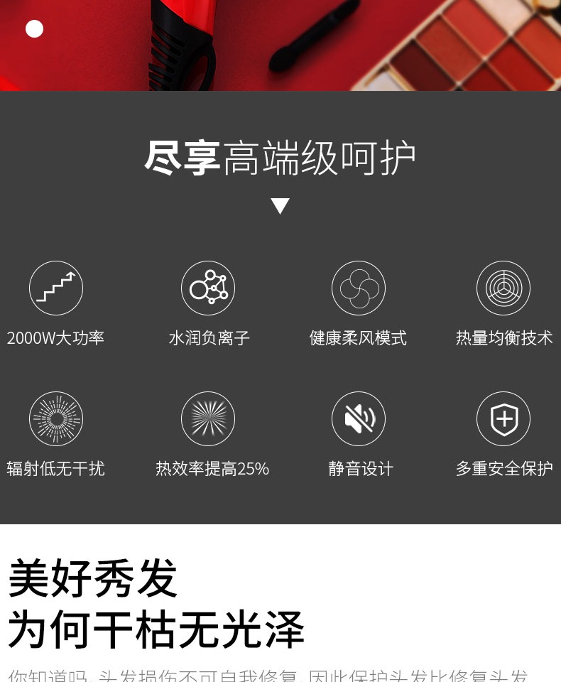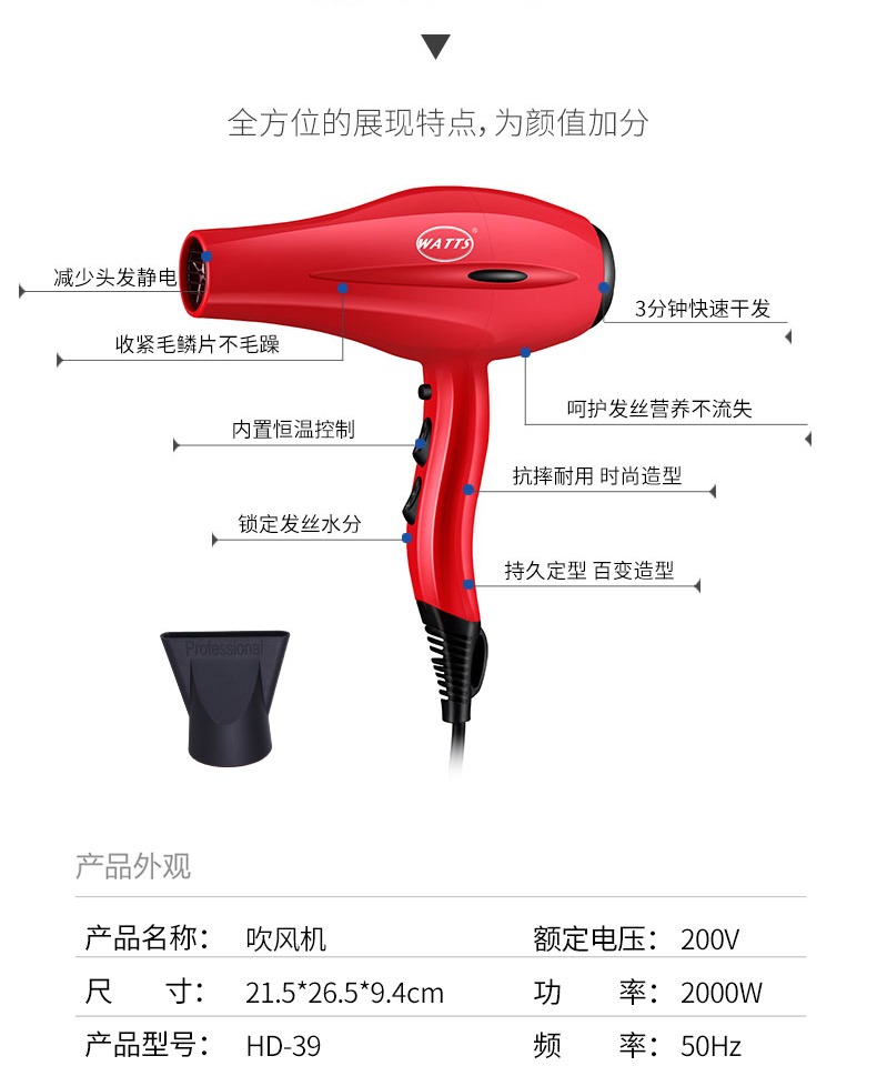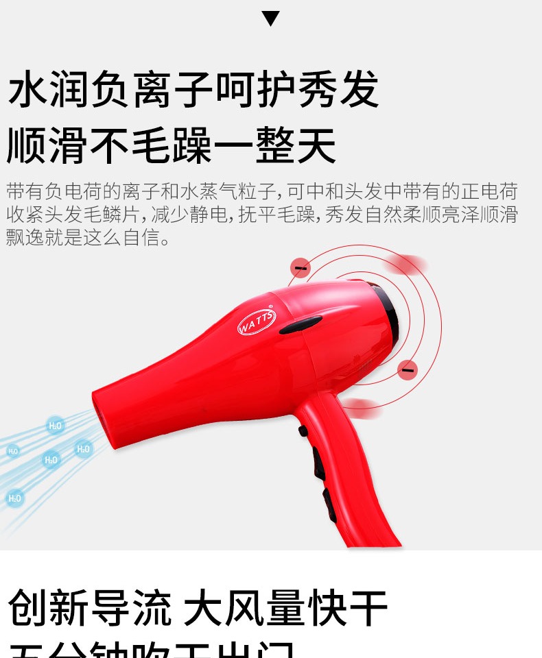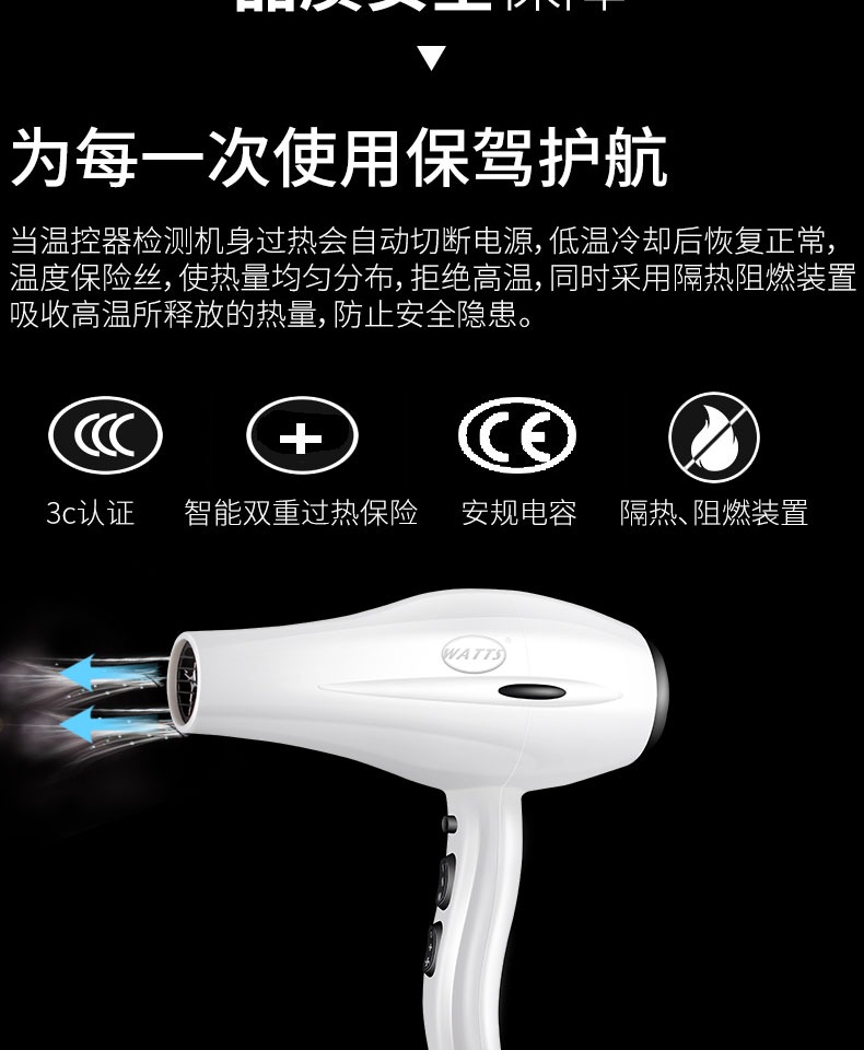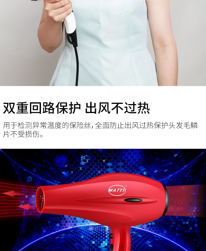 • 商品名称:WATTS电吹风机2000W大功率家用速干理发店冷热风负离子护发吹风筒